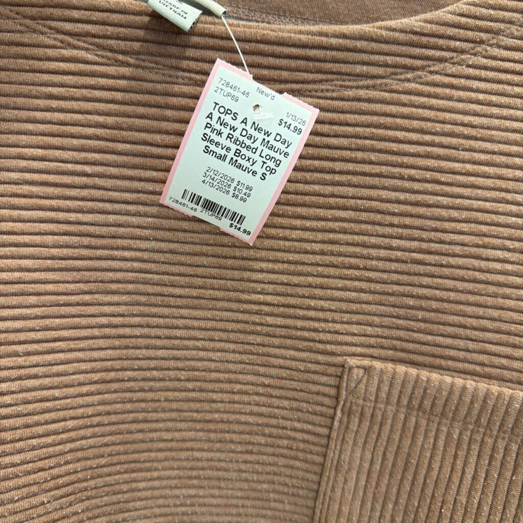 A New Day Mauve Pink Ribbed Long Sleeve Boxy Top Small