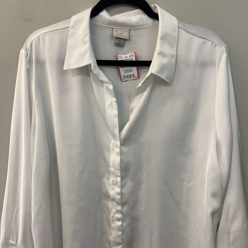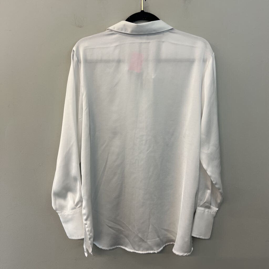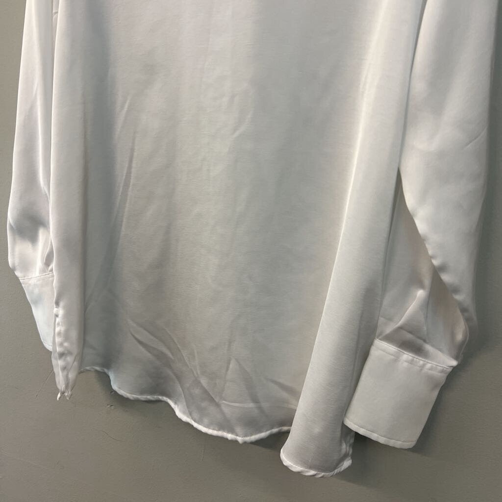 A New Day White Silky Long Sleeve Button Down Top Medium