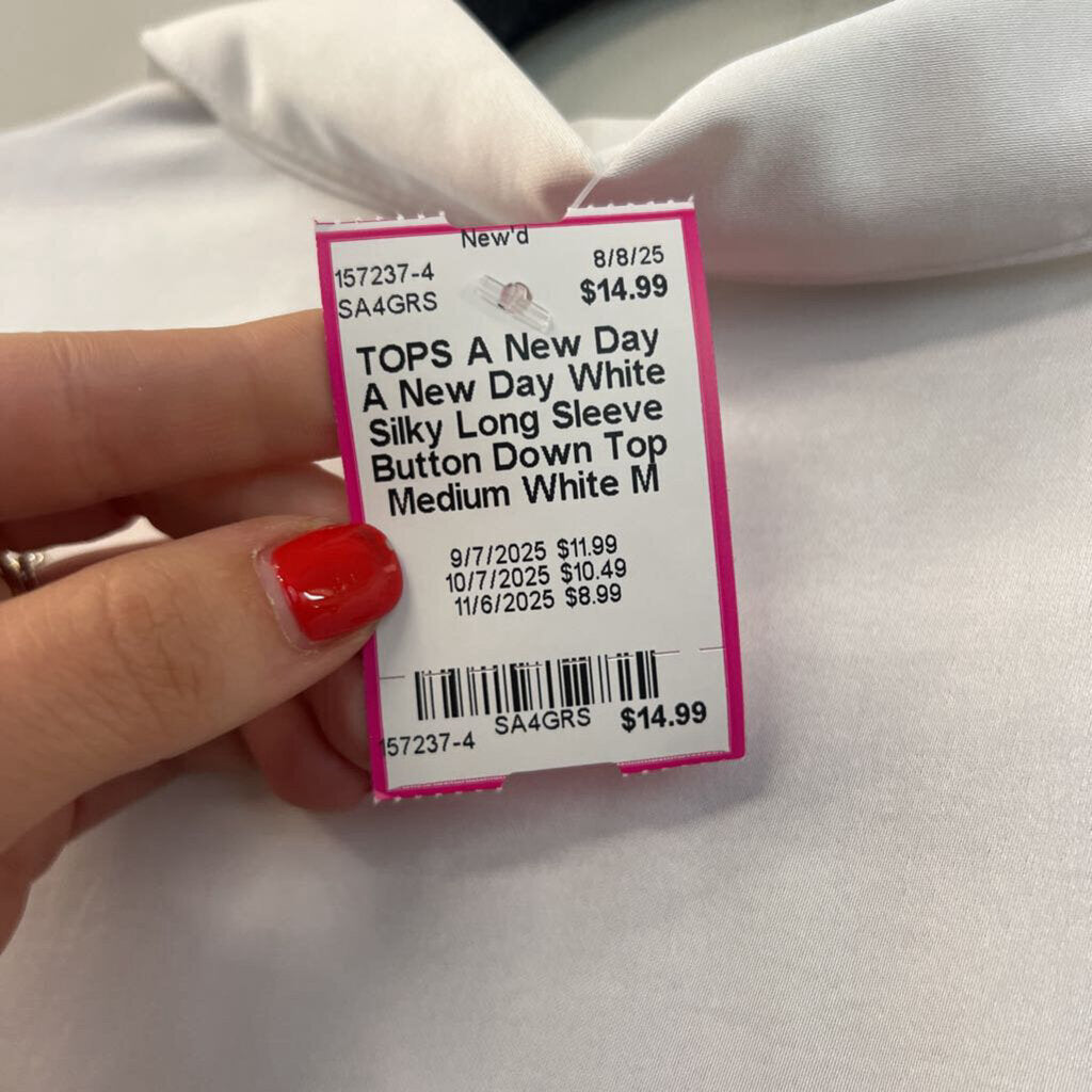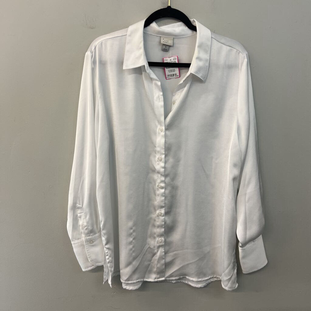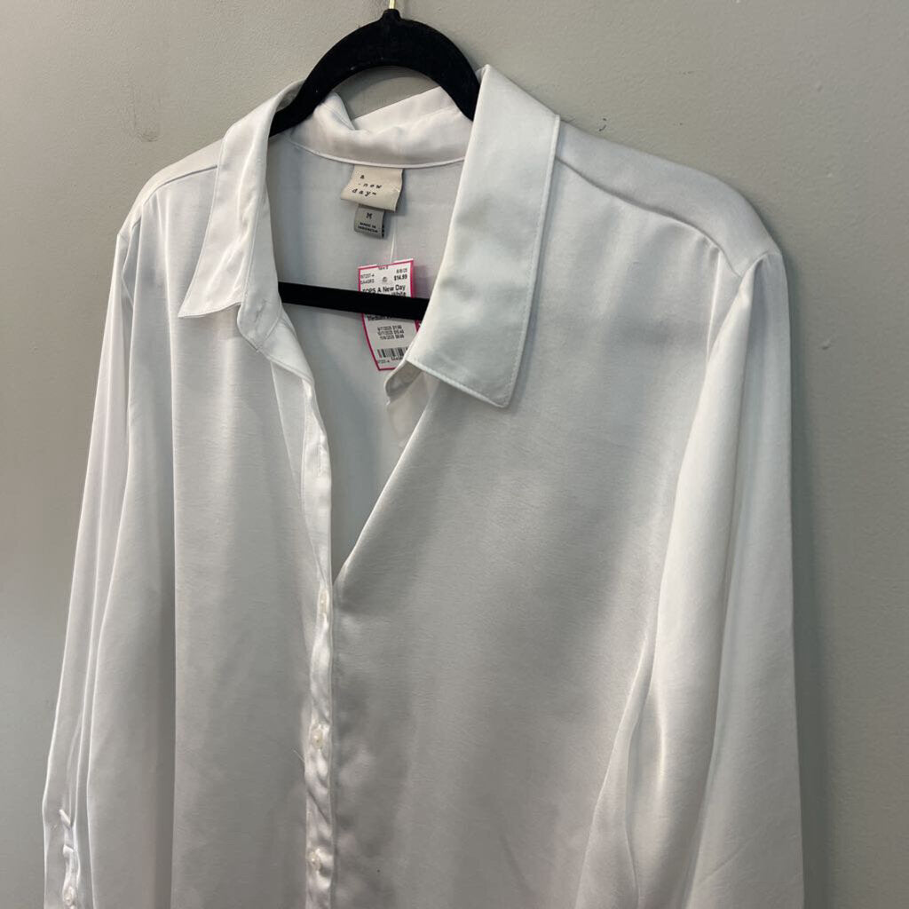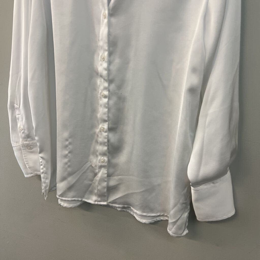 A New Day White Silky Long Sleeve Button Down Top Medium