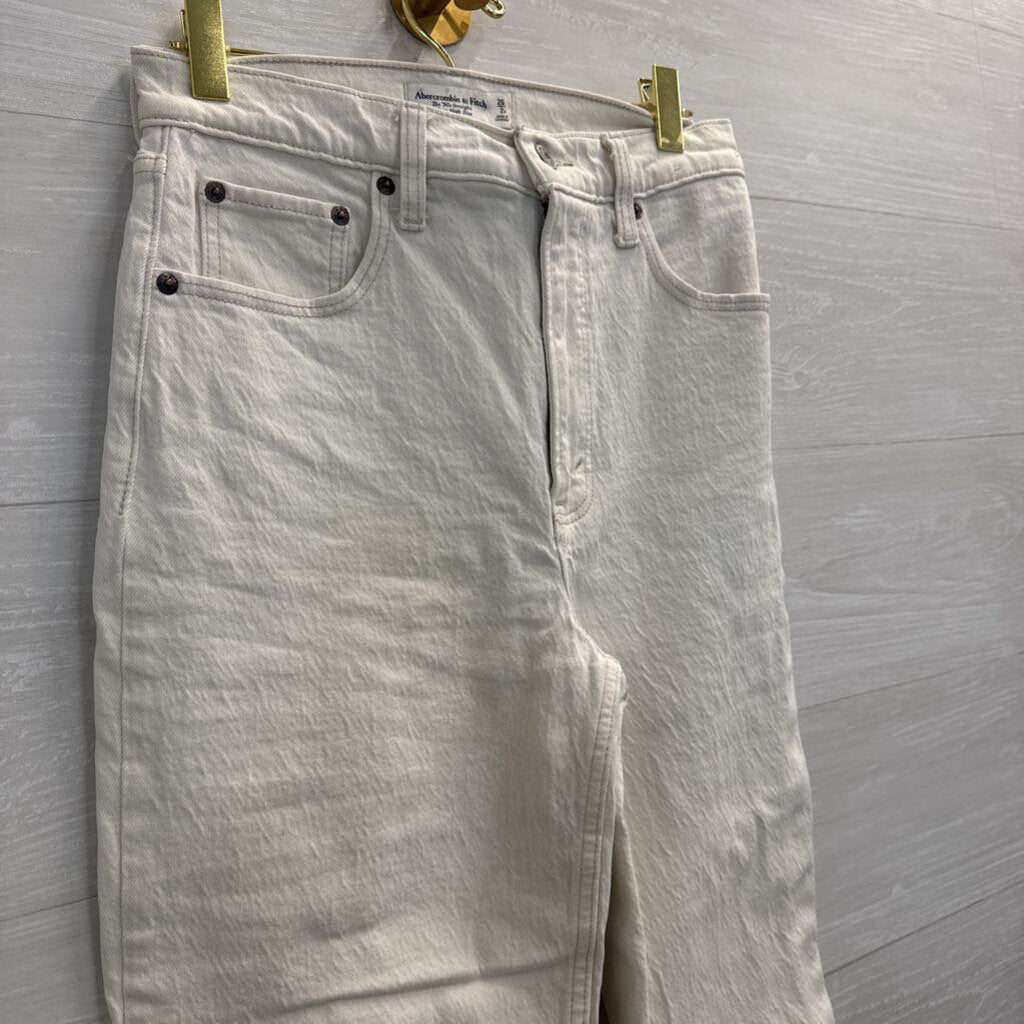 Abercrombie and Fitch Cream Denim The 90s Straight Ultra High Rise Jeans 26