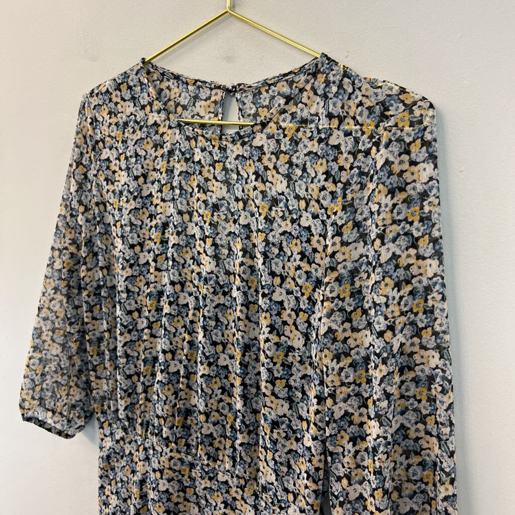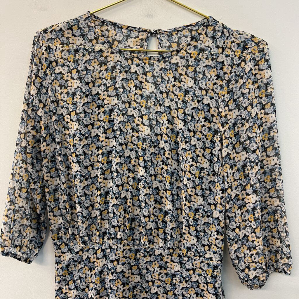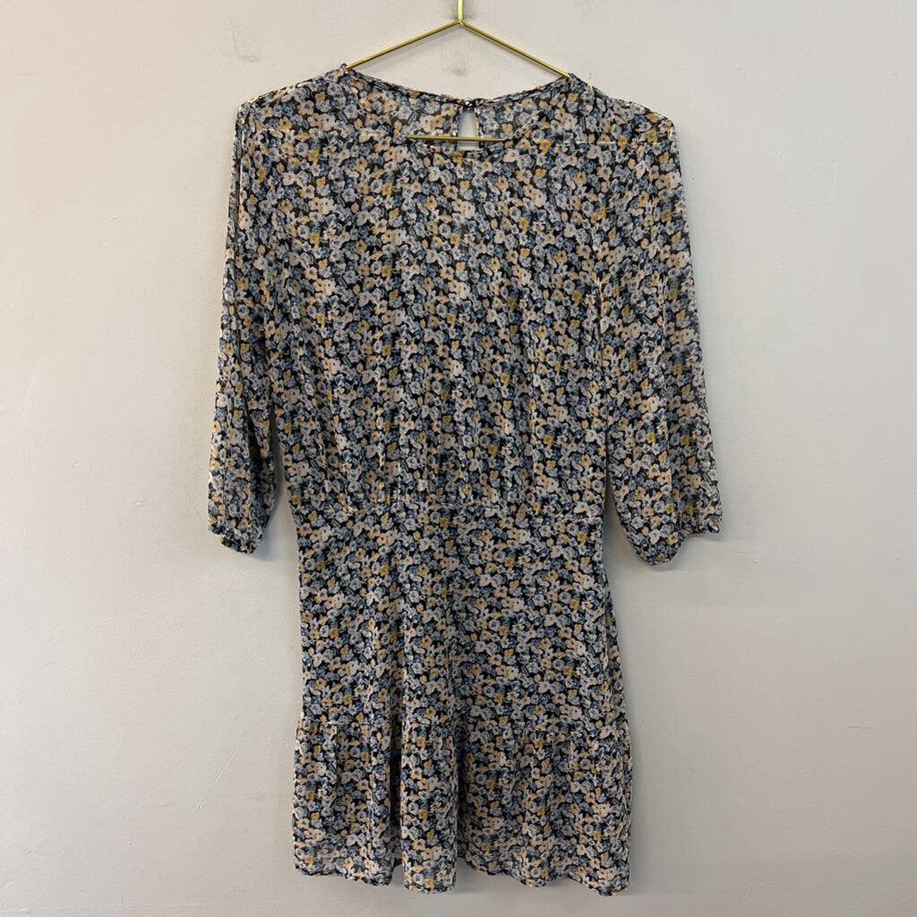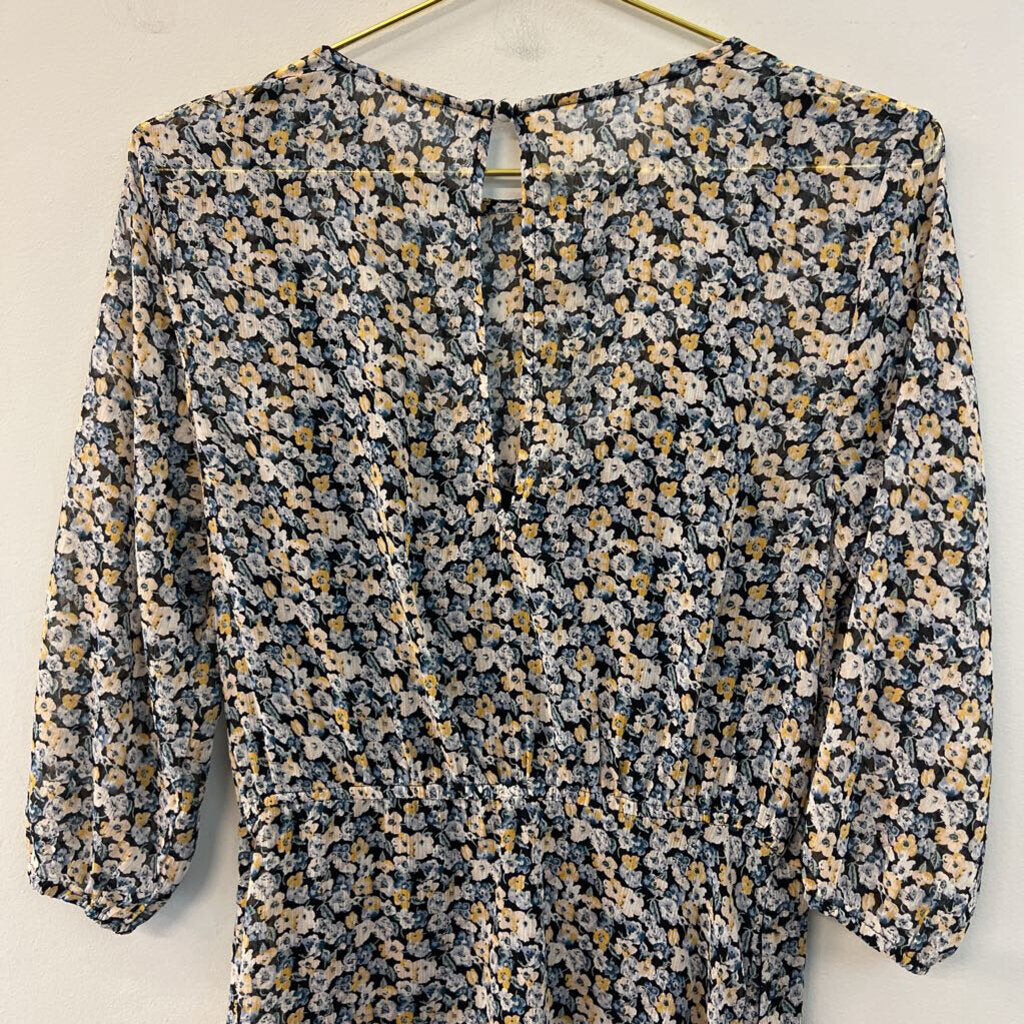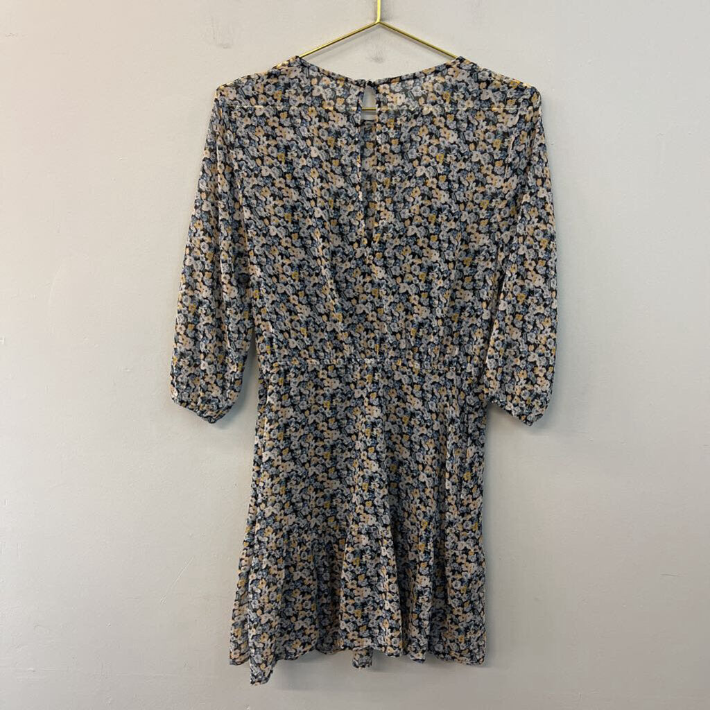 Abercrombie and Fitch Navy/ Yellow Flower Print Long Sleeve Dress Medium