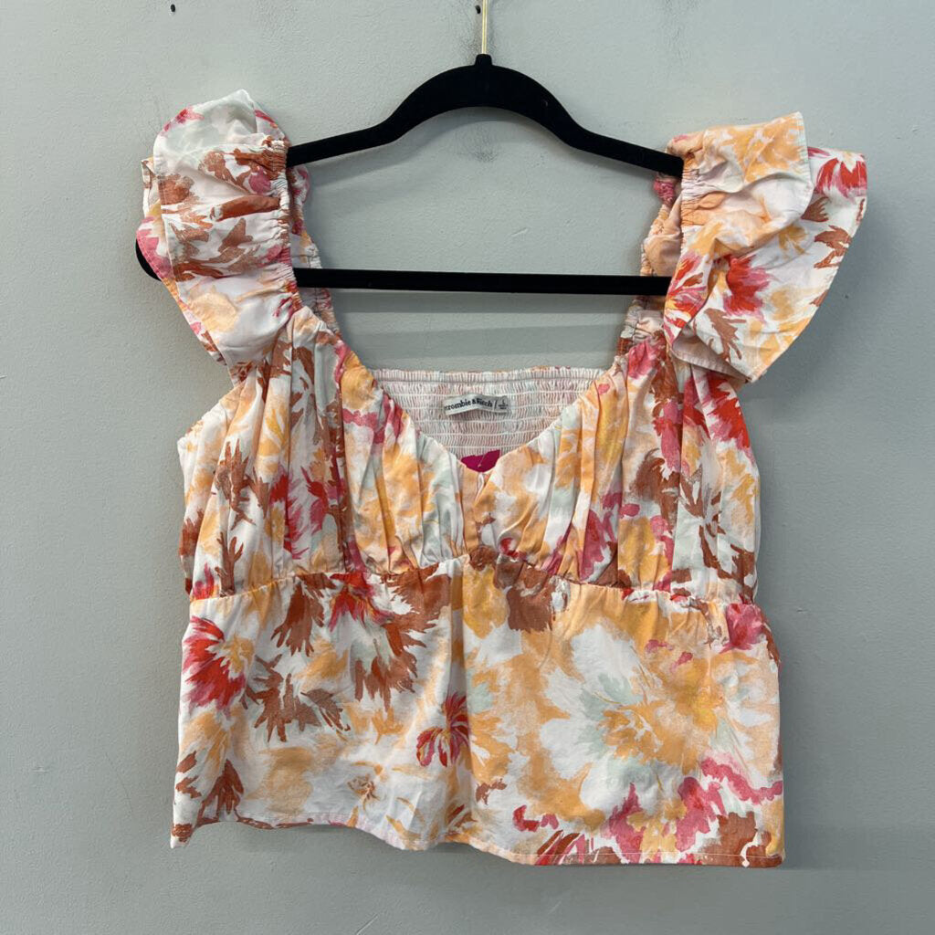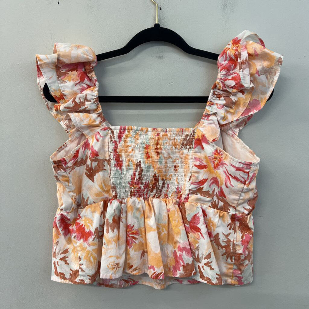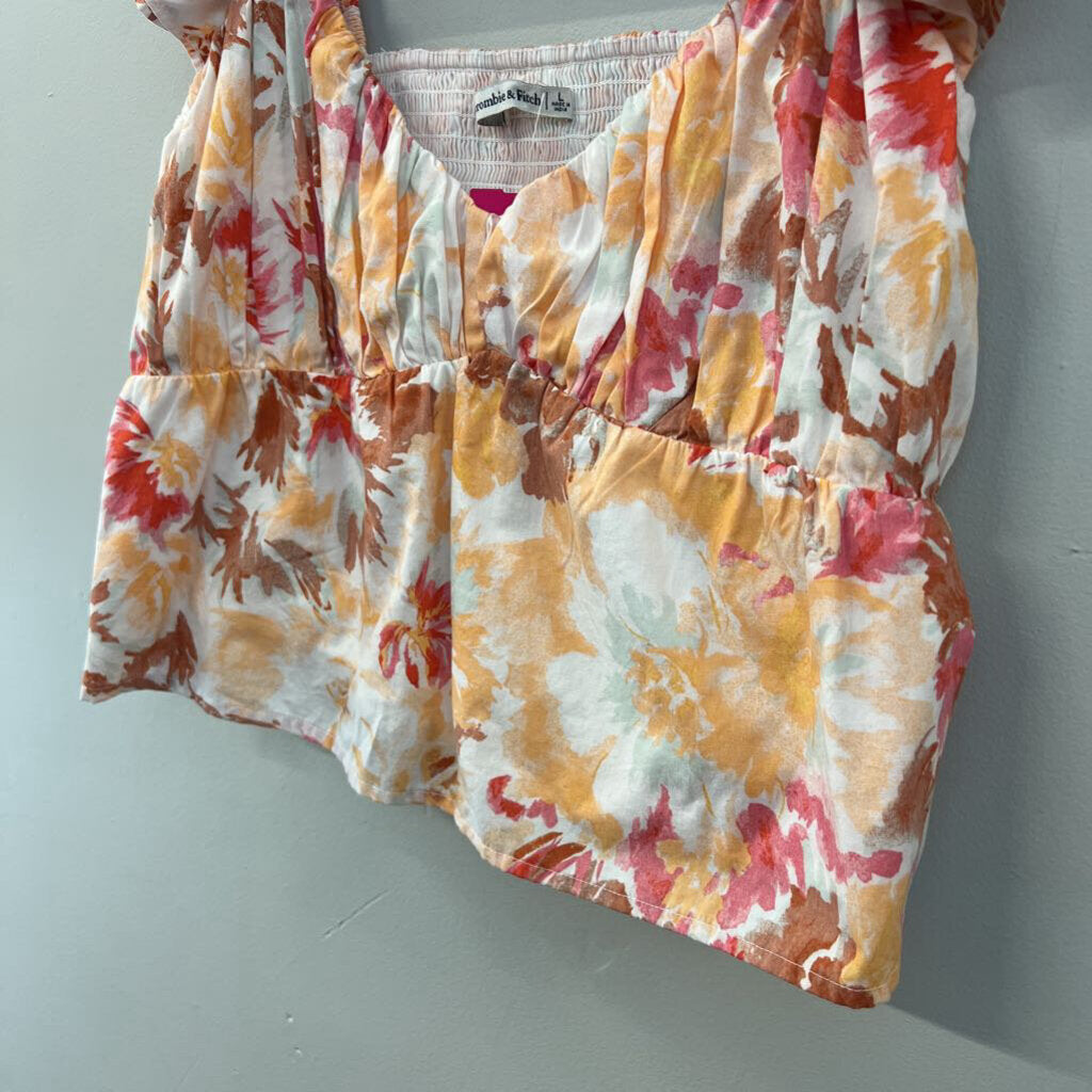 Abercrombie and Fitch White/ Orange Print Cropped Short Ruffle Sleeve Top Large