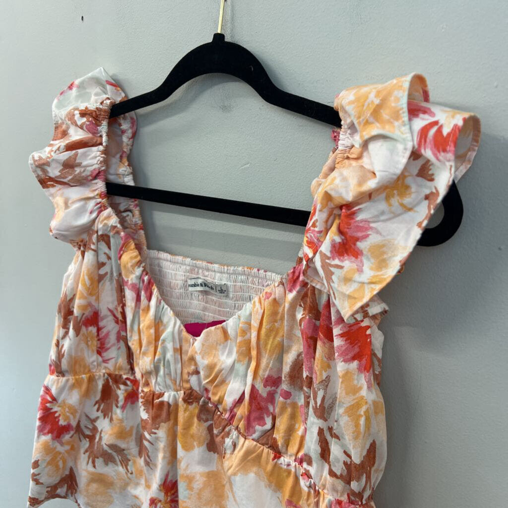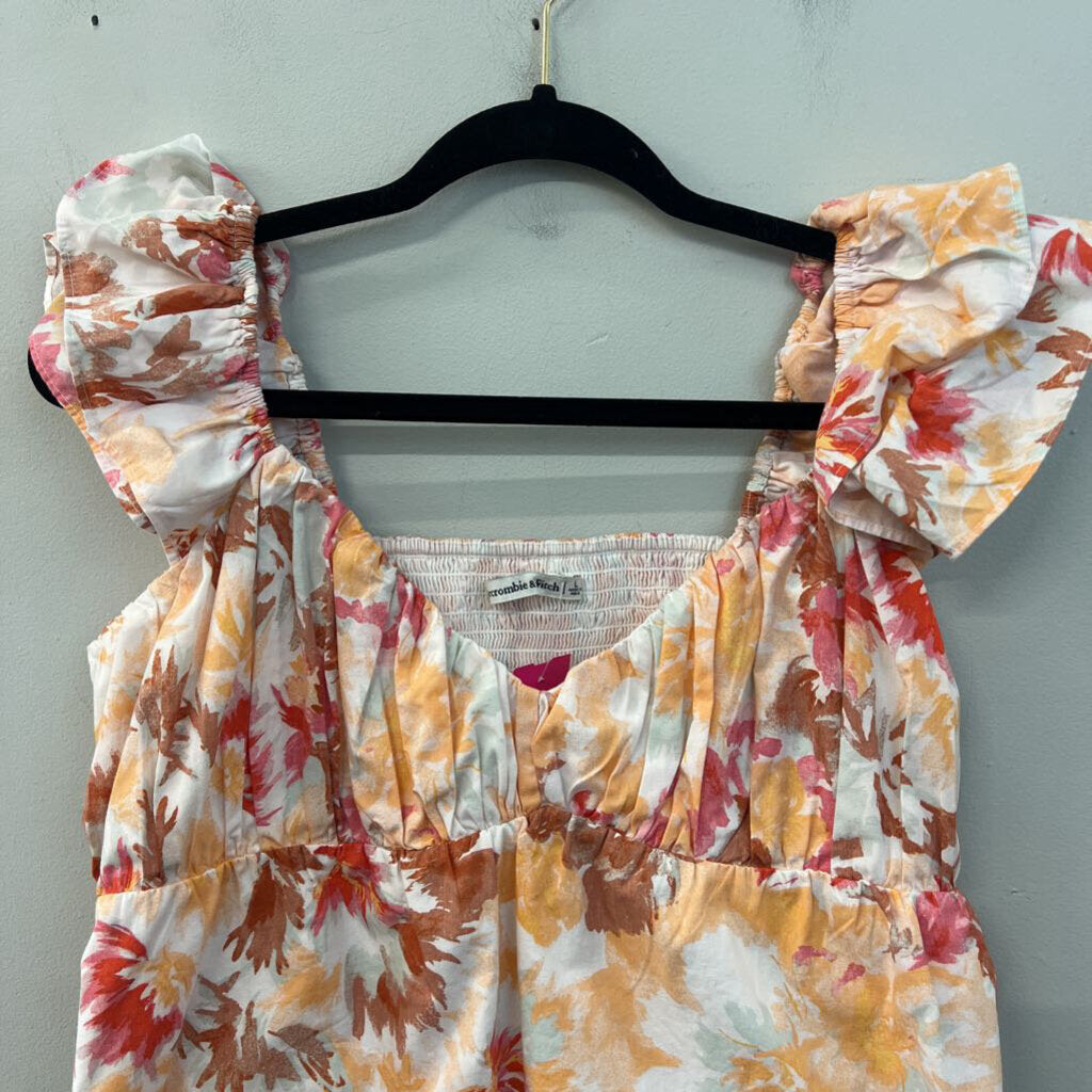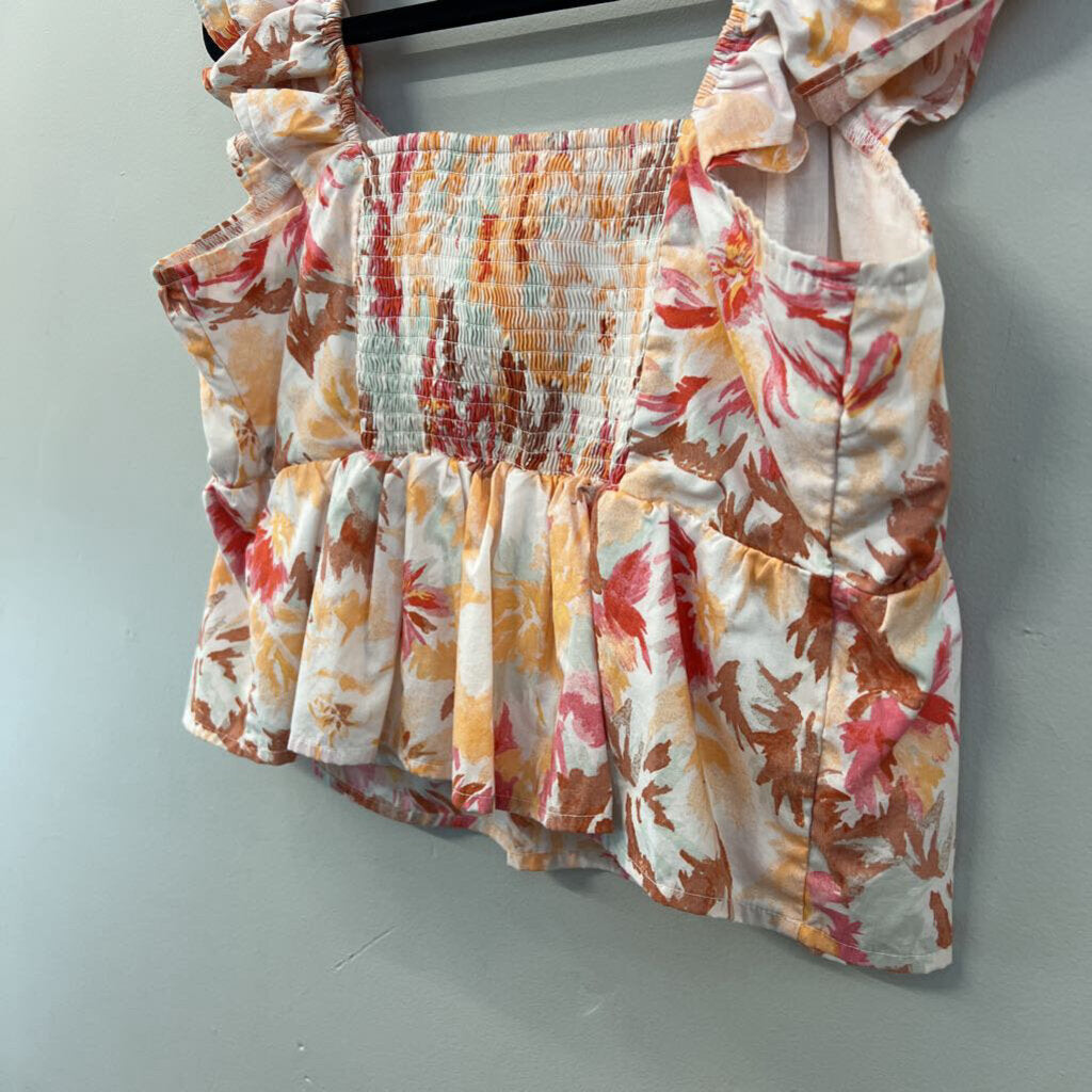 Abercrombie and Fitch White/ Orange Print Cropped Short Ruffle Sleeve Top Large