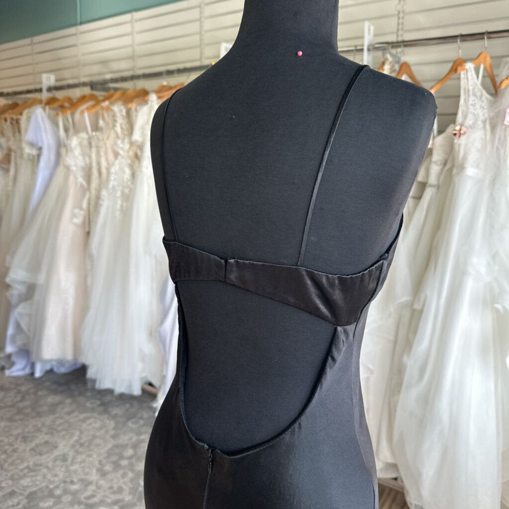 ABS Black Satin Slinky Highneck Long Formal Dress 4
