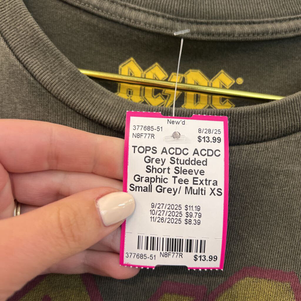 ACDC Grey Studded Short Sleeve Graphic Tee Extra Small