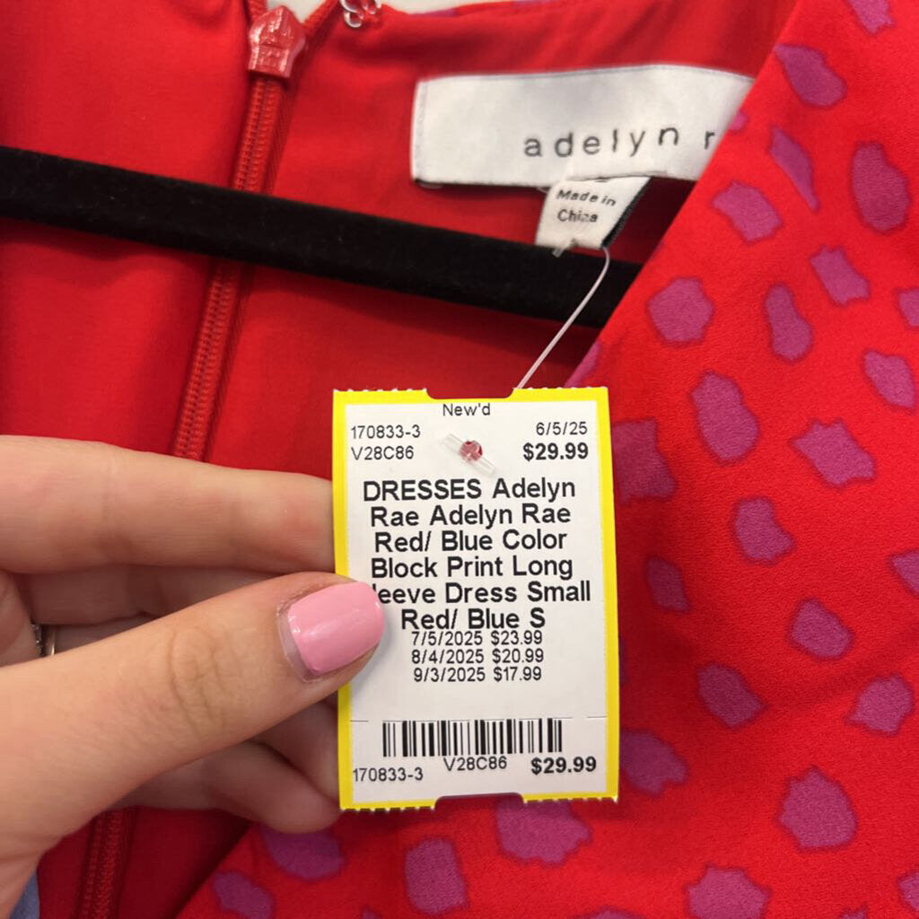 Adelyn Rae Red/ Blue Color Block Print Long Sleeve Dress Small Anthropologie