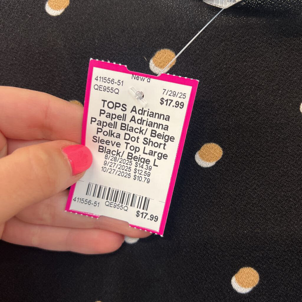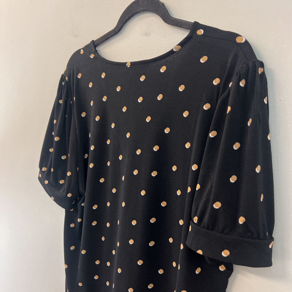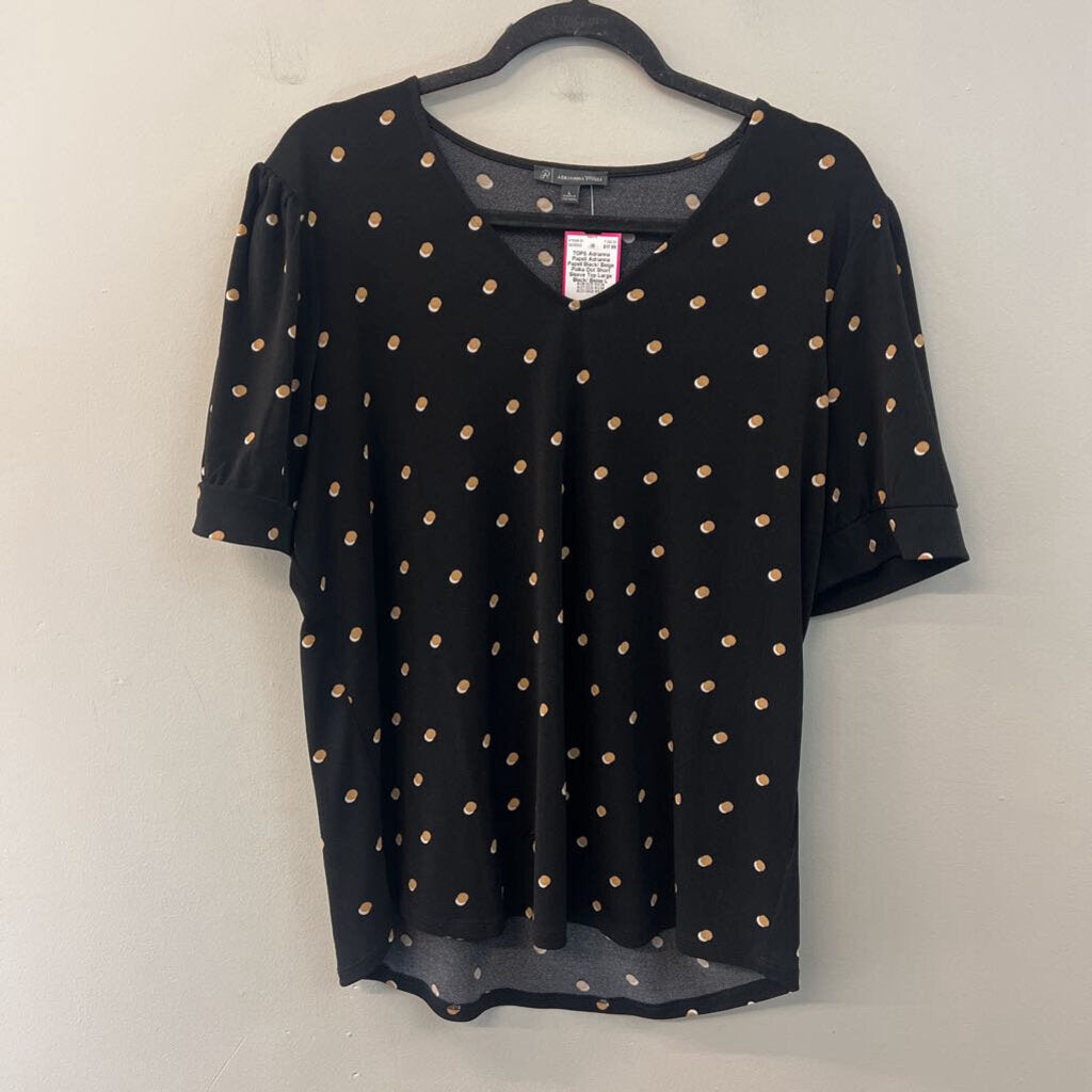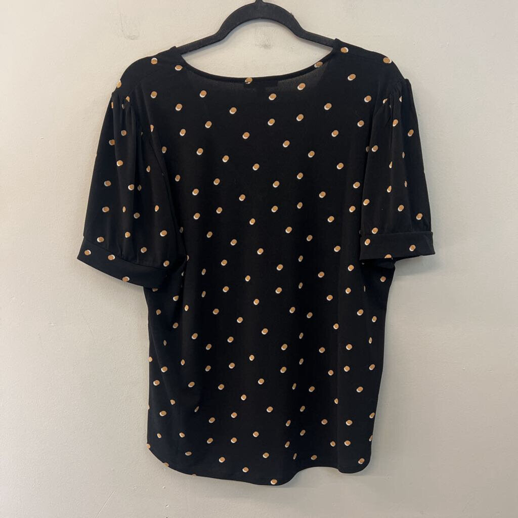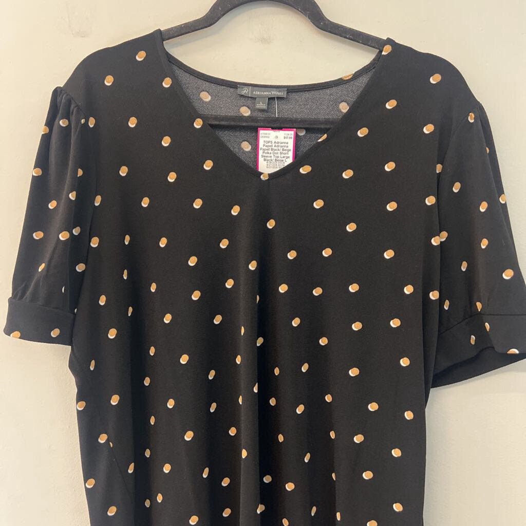 Adrianna Papell Black/ Beige Polka Dot Short Sleeve Top Large