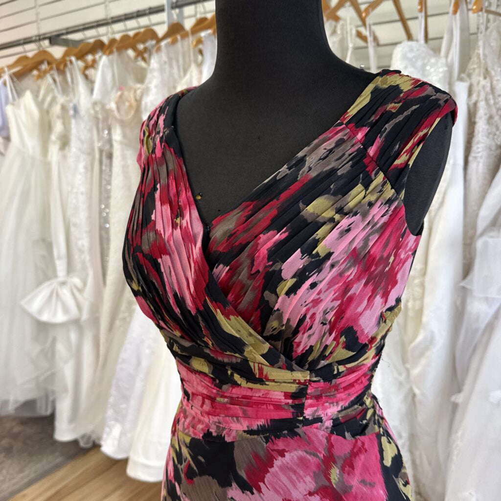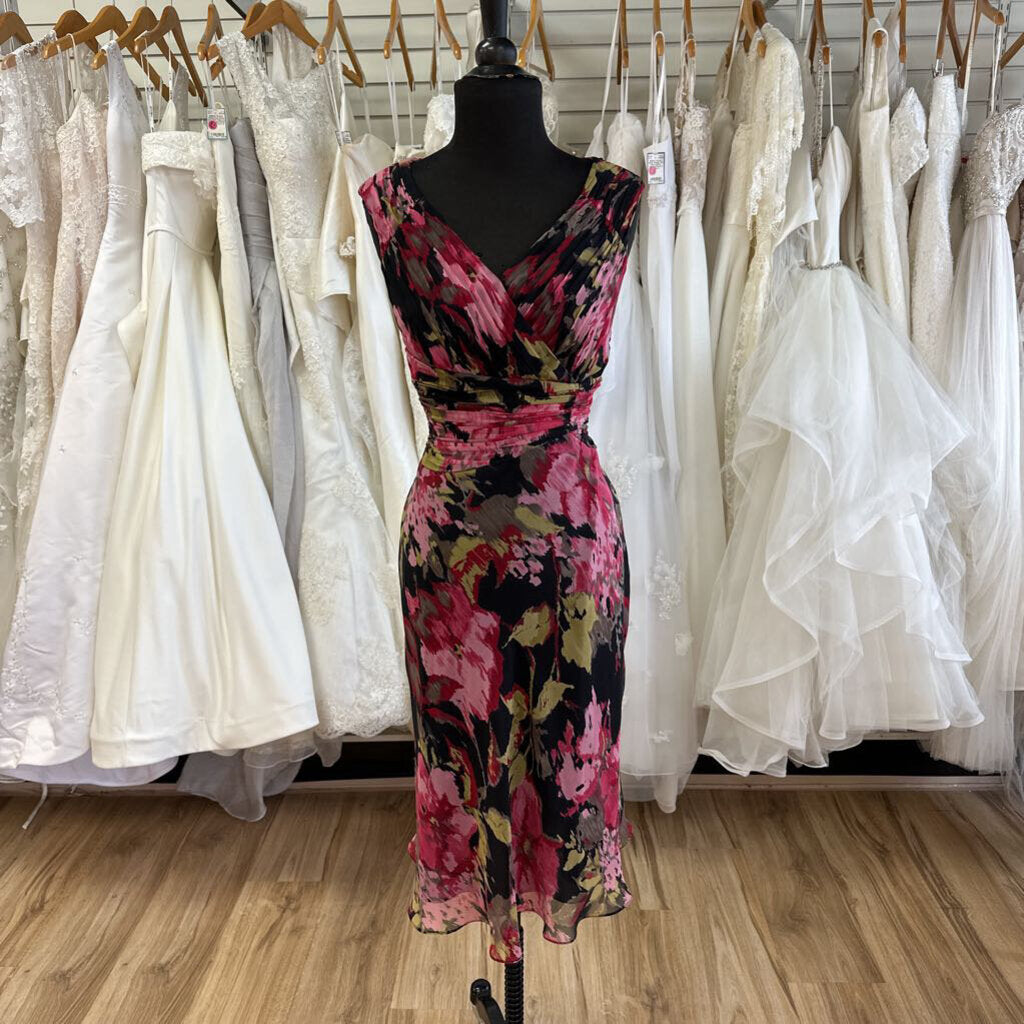 Adrianna Papell Black/ Multi Flower Print Short Formal Dress 10