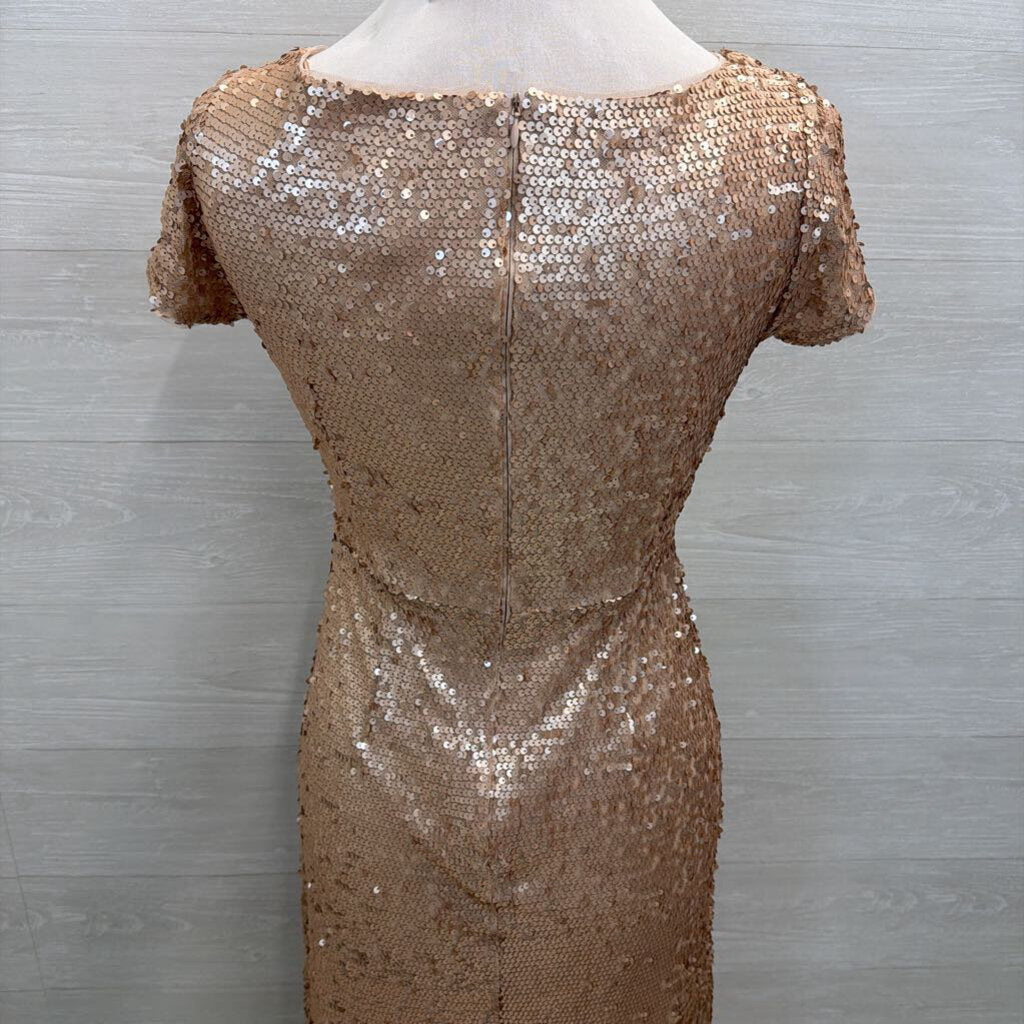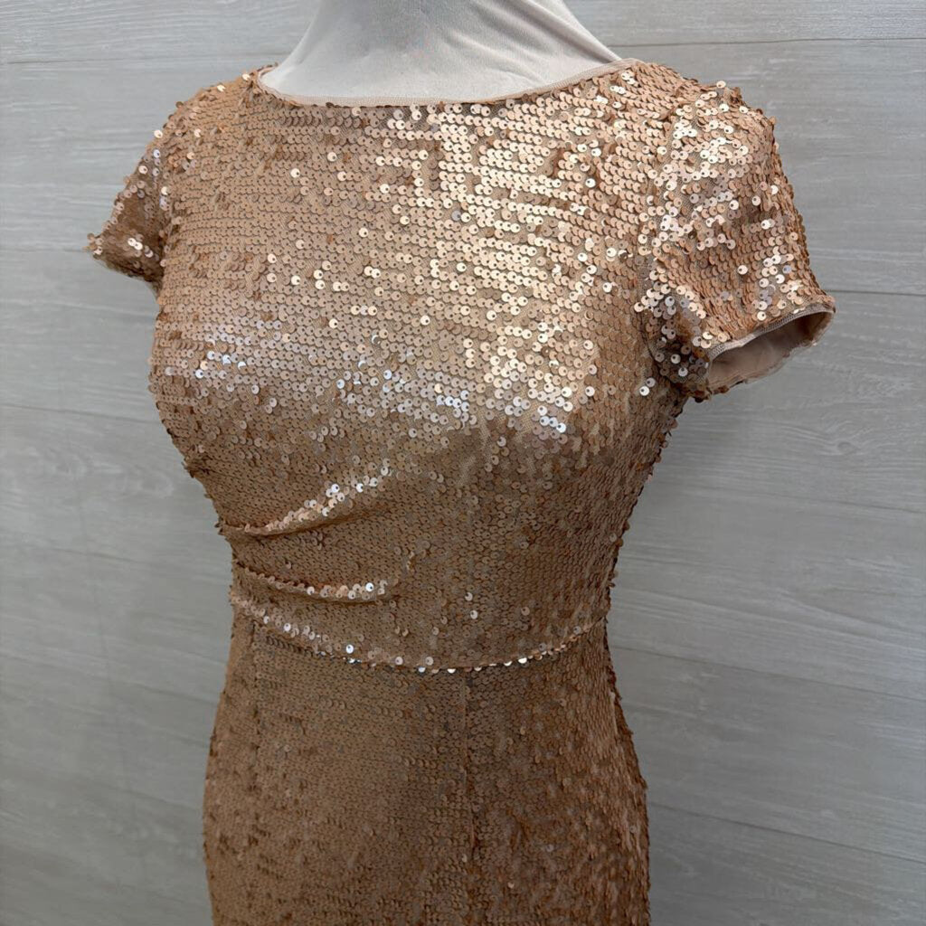 Adrianna Papell Rose Gold Sequin Short Sleeve Long Formal Dress 4