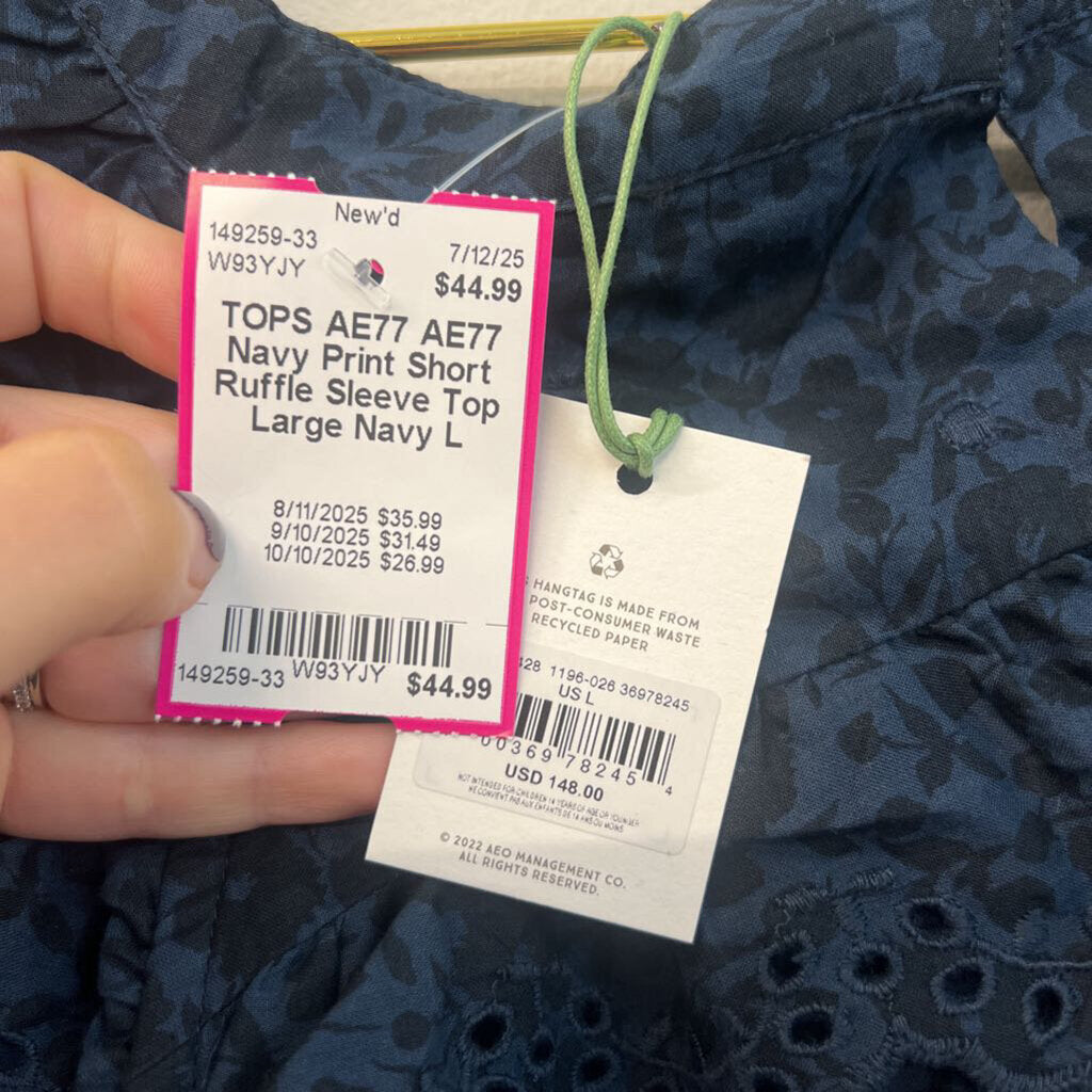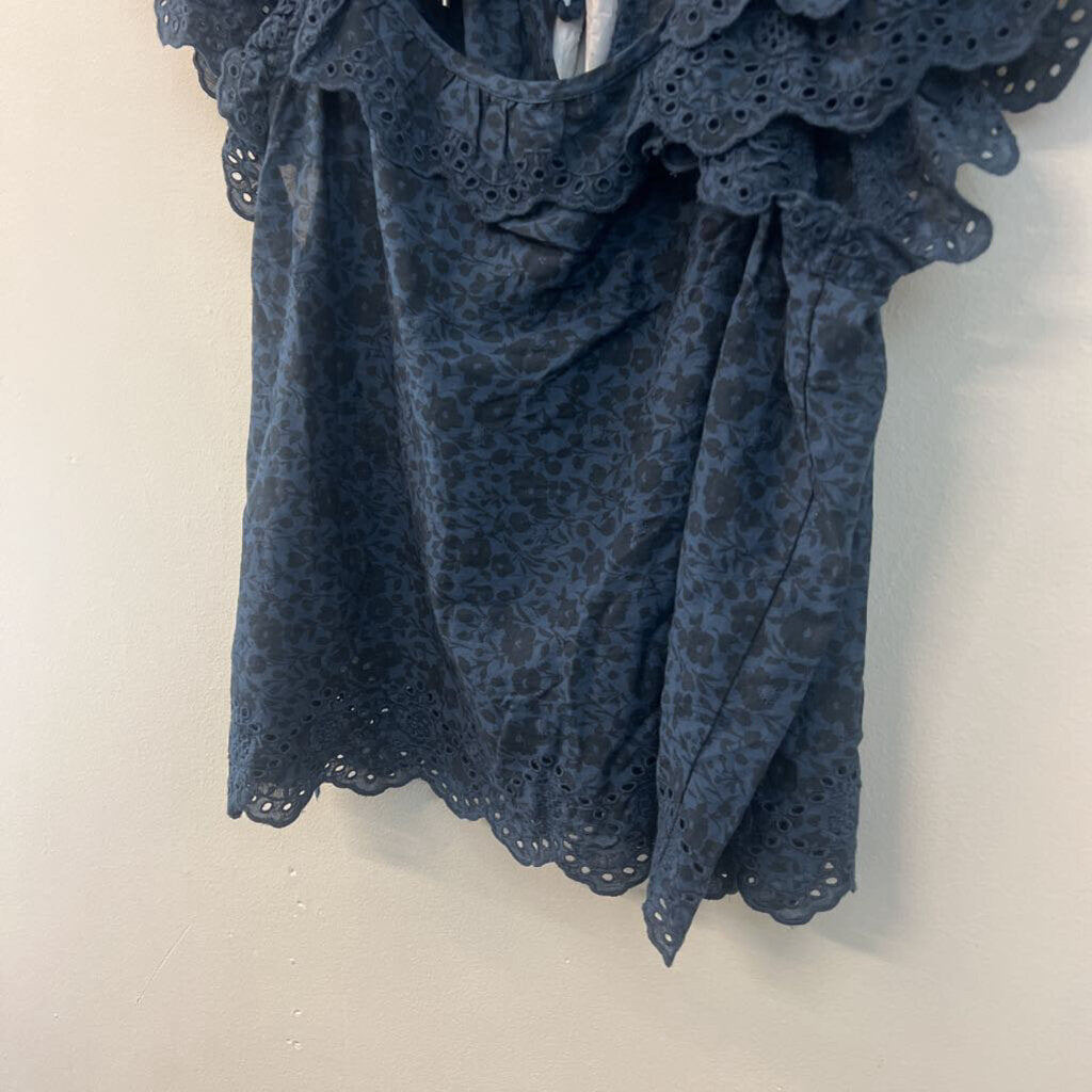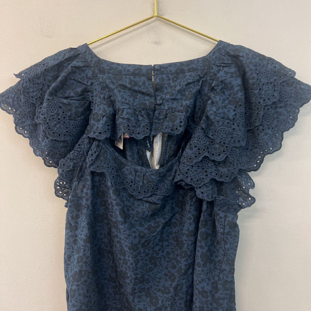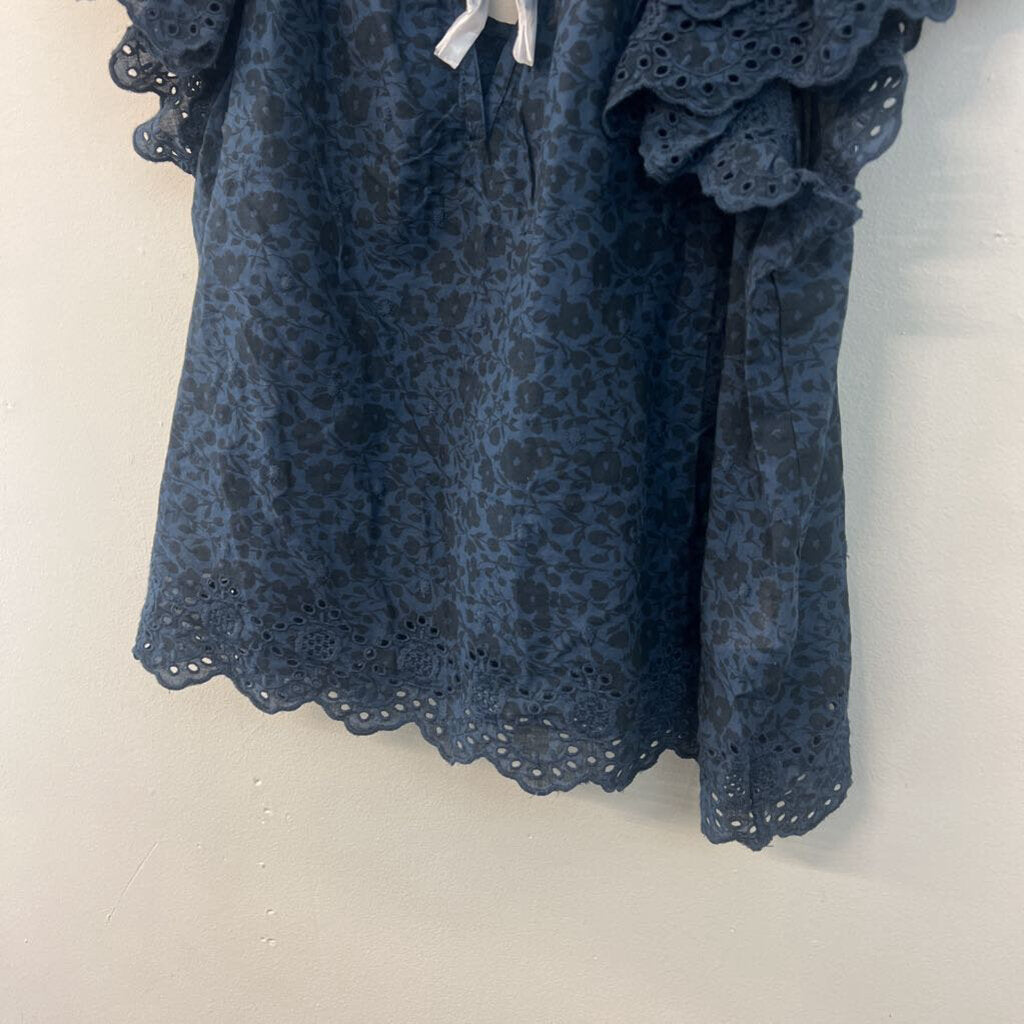 AE77 Navy Print Short Ruffle Sleeve Top Large