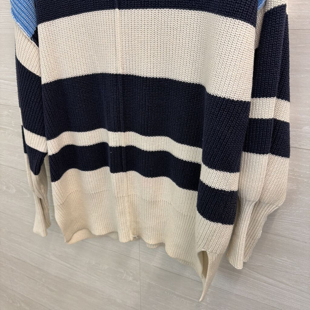 Aerie Cream/ Blue Oversized Striped Knit Quarter Zip Pullover Extra Small