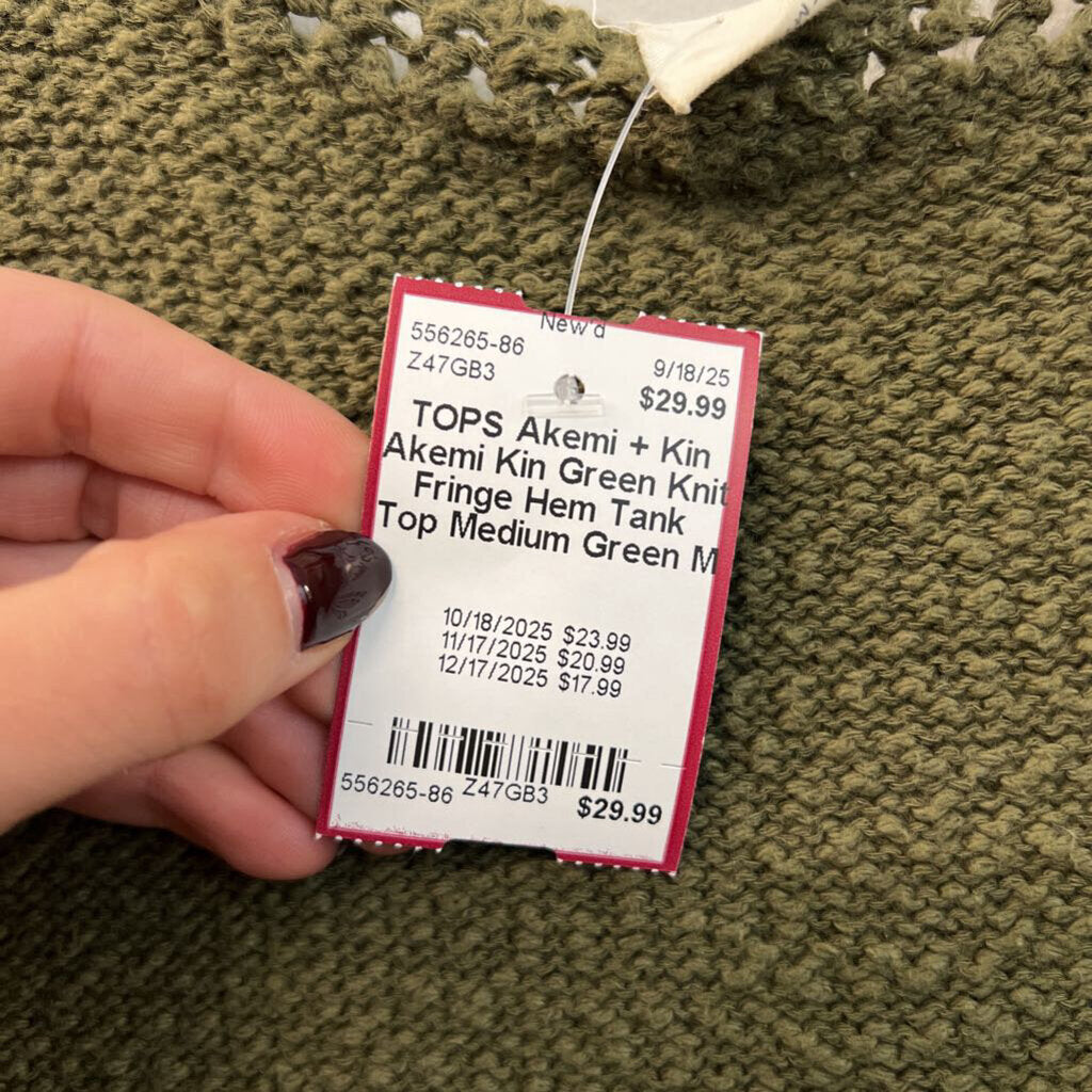 Akemi Kin Green Knit Fringe Hem Tank Top Medium