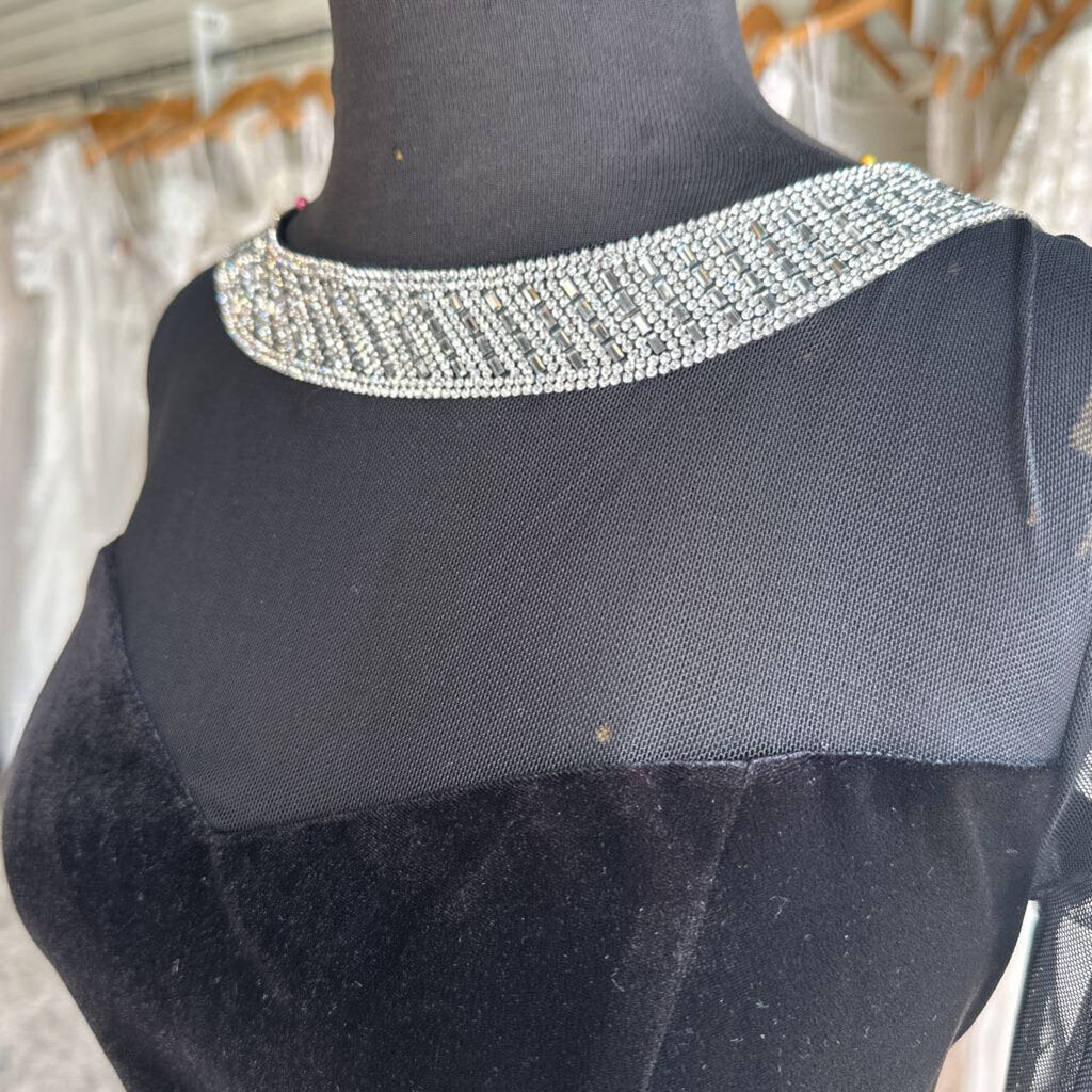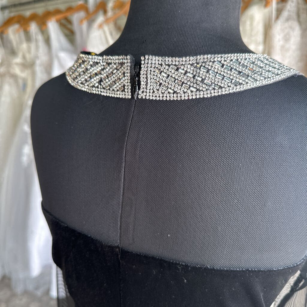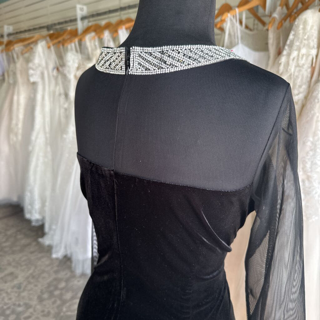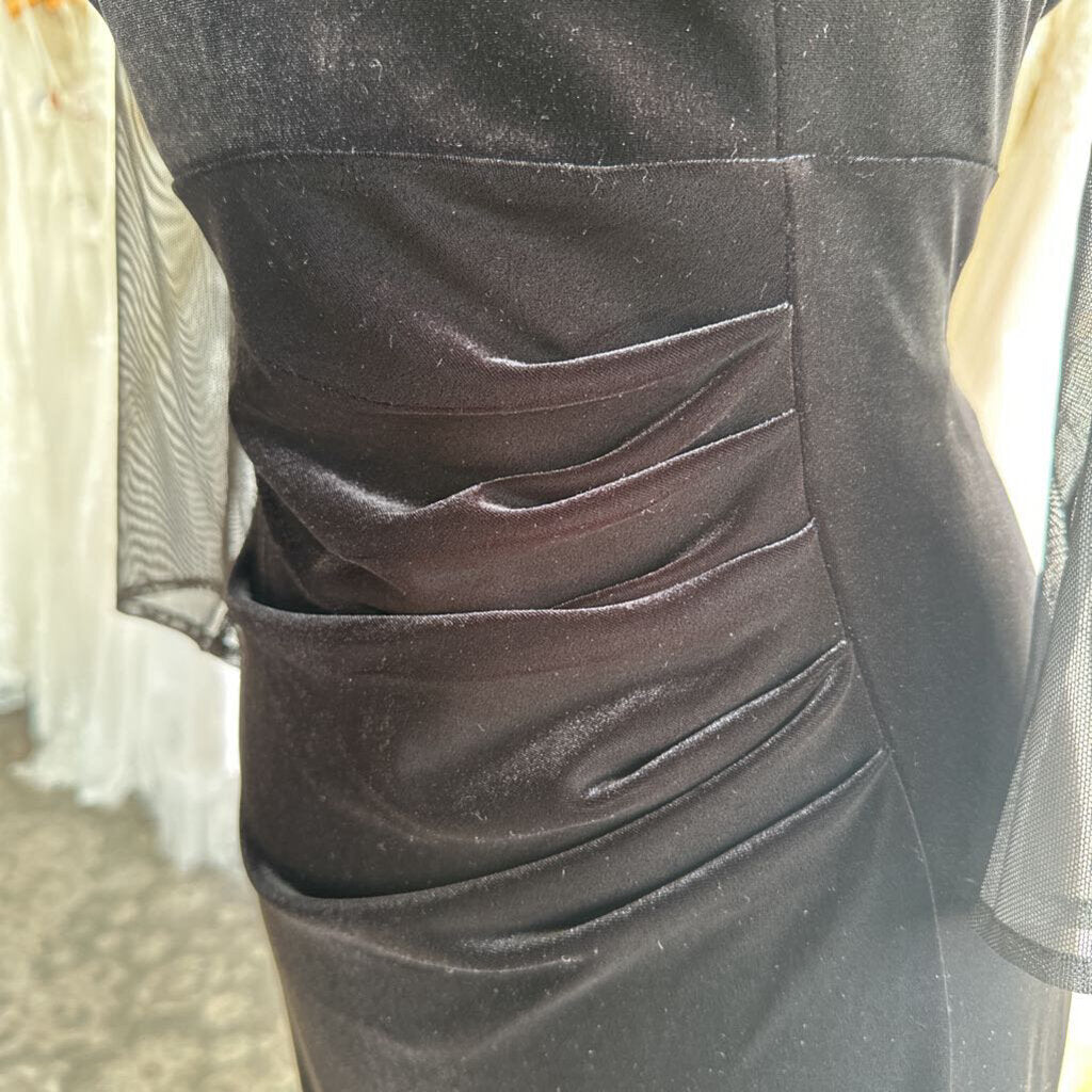 Alex Evenings Black Velvet Embellished Neckline Long Sleeve Long Formal Dress 14