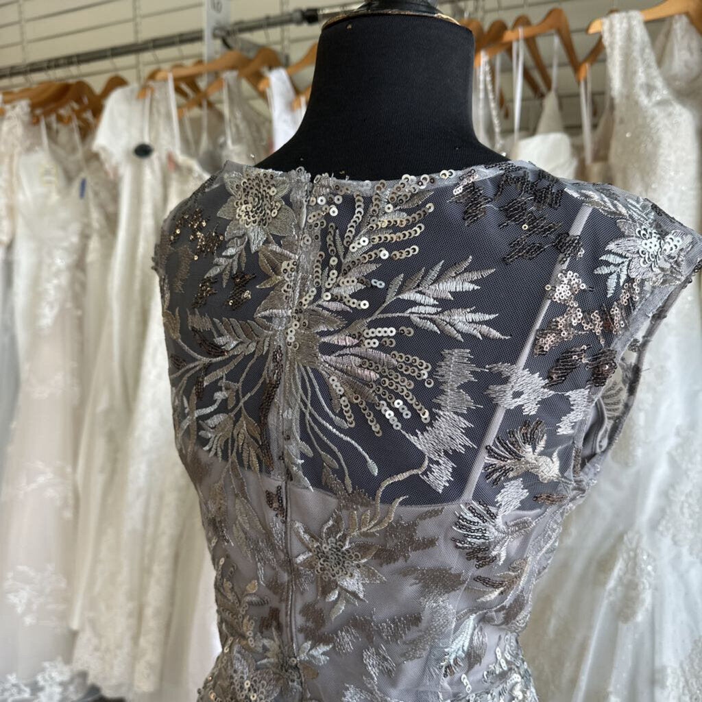 Alex Evenings Grey Sequin Embroidered Short Formal Dress 14 Petite