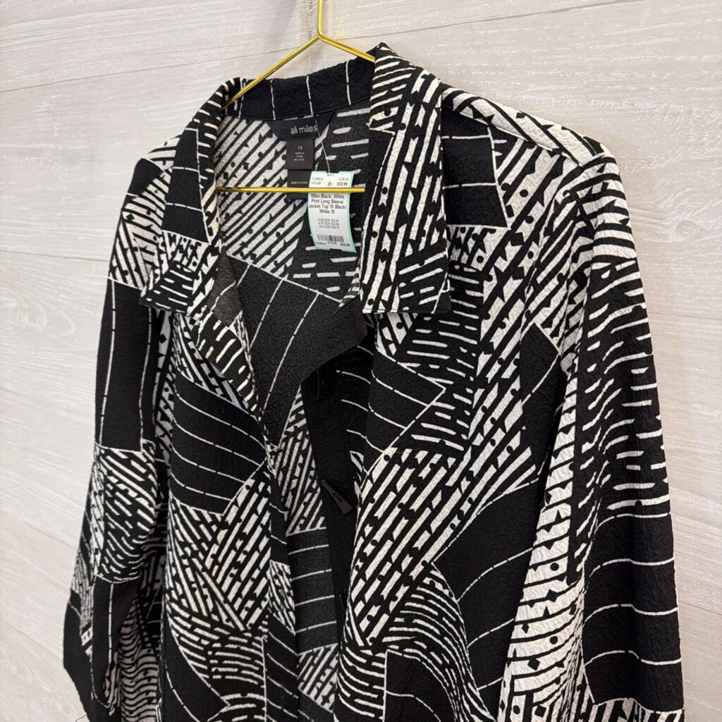 Ali Miles Black/ White Print Long Sleeve Jacket Top 1X
