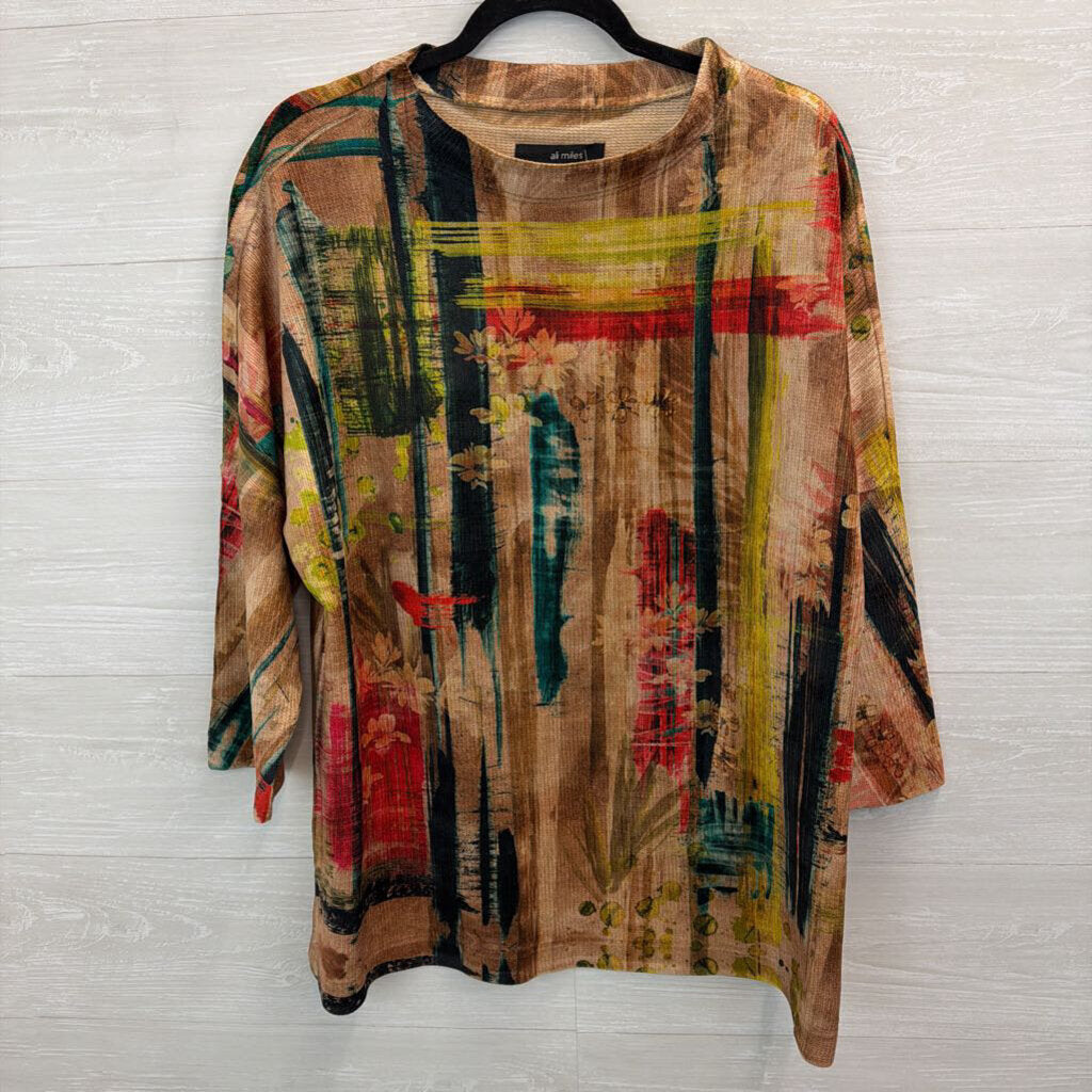 Ali Miles Brown/ Multi Print Soft Long Sleeve Top 2X