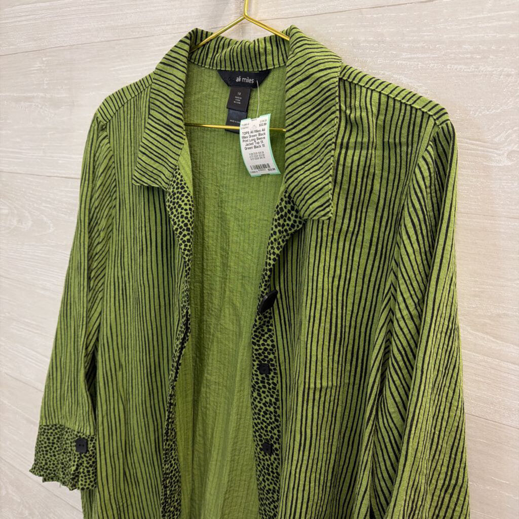 Ali Miles Green/ Black Print Long Sleeve Jacket Top 1X