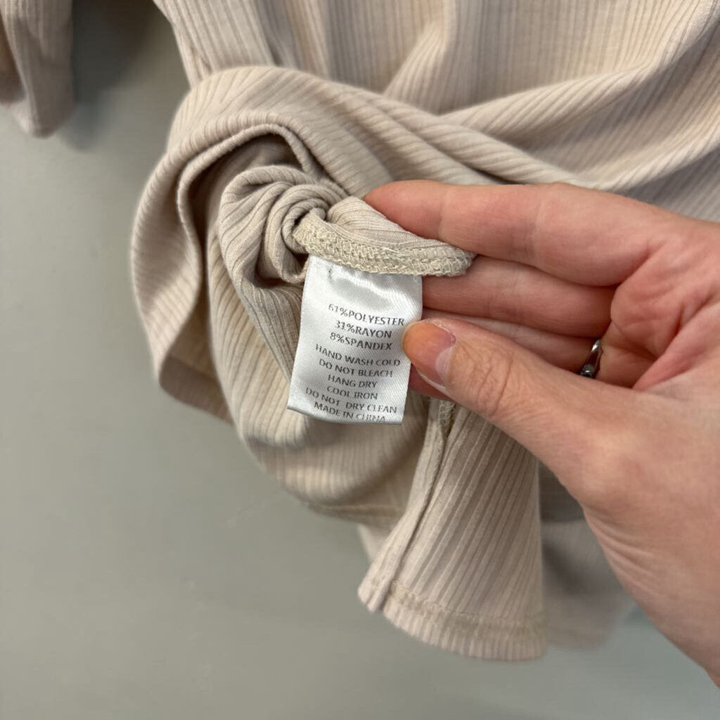 All Row Beige Short Sleeve Button Down Top Small