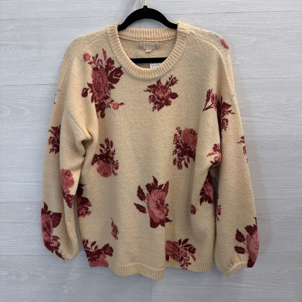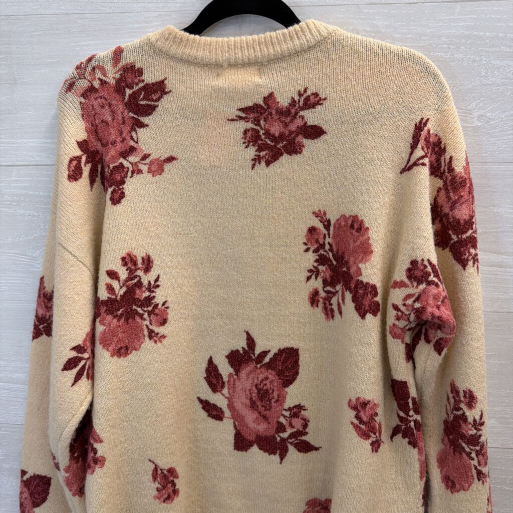 Altar'd State Beige/ Red Floral Print Long Sleeve Sweater Small