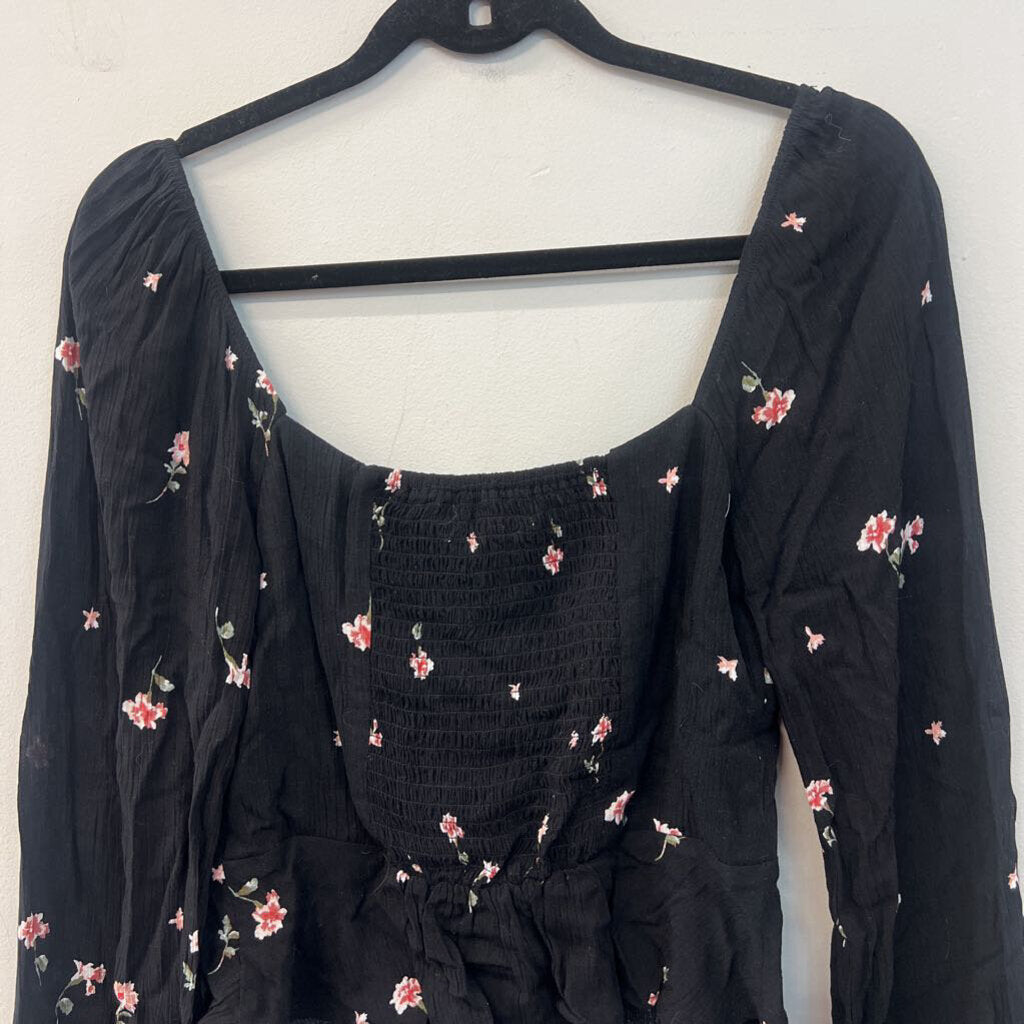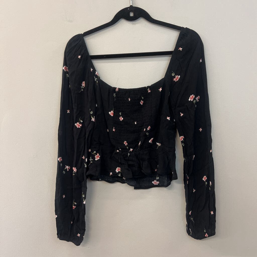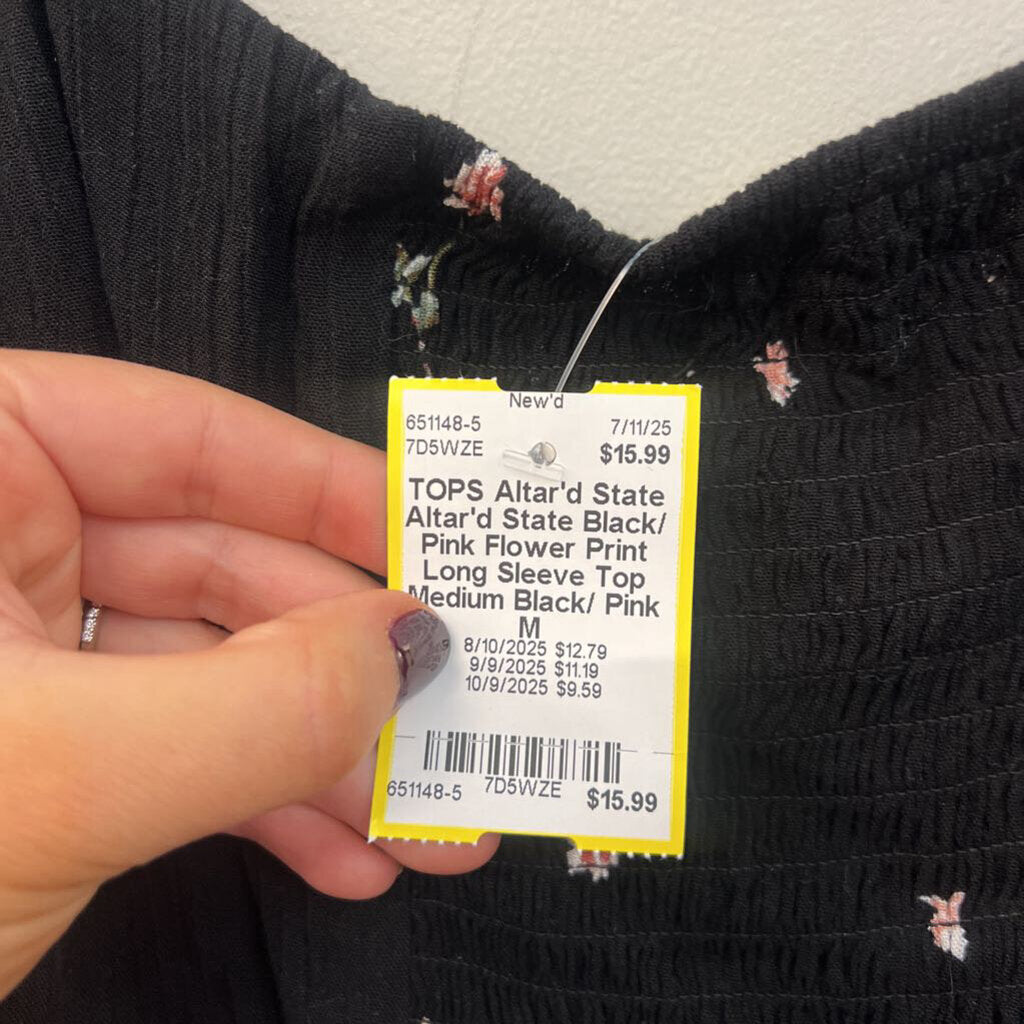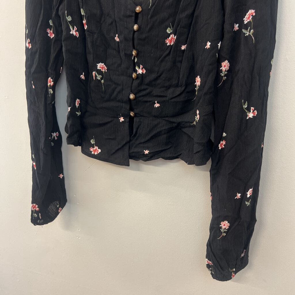 Altar'd State Black/ Pink Flower Print Long Sleeve Top Medium
