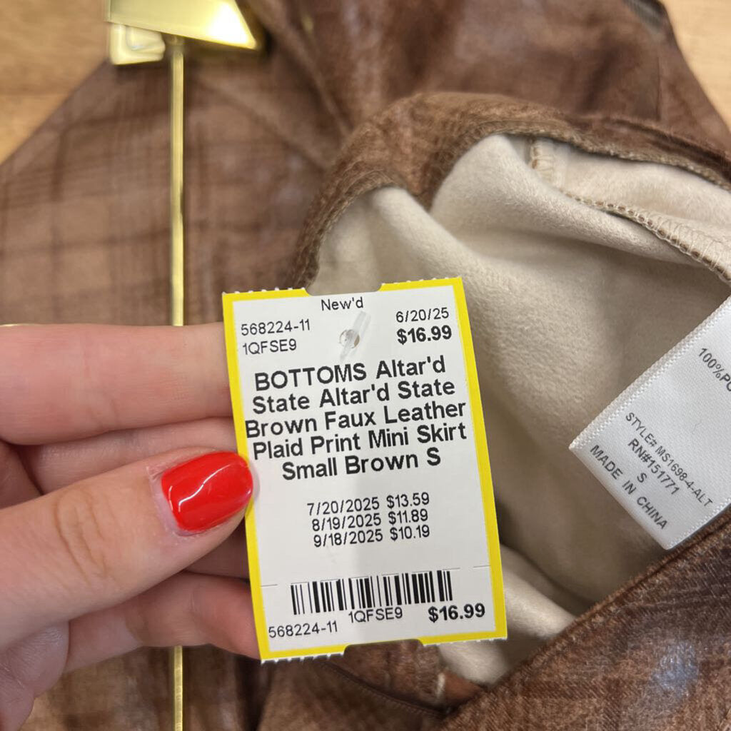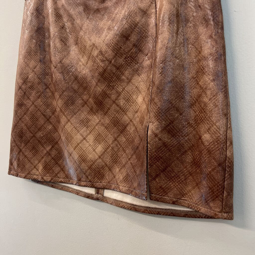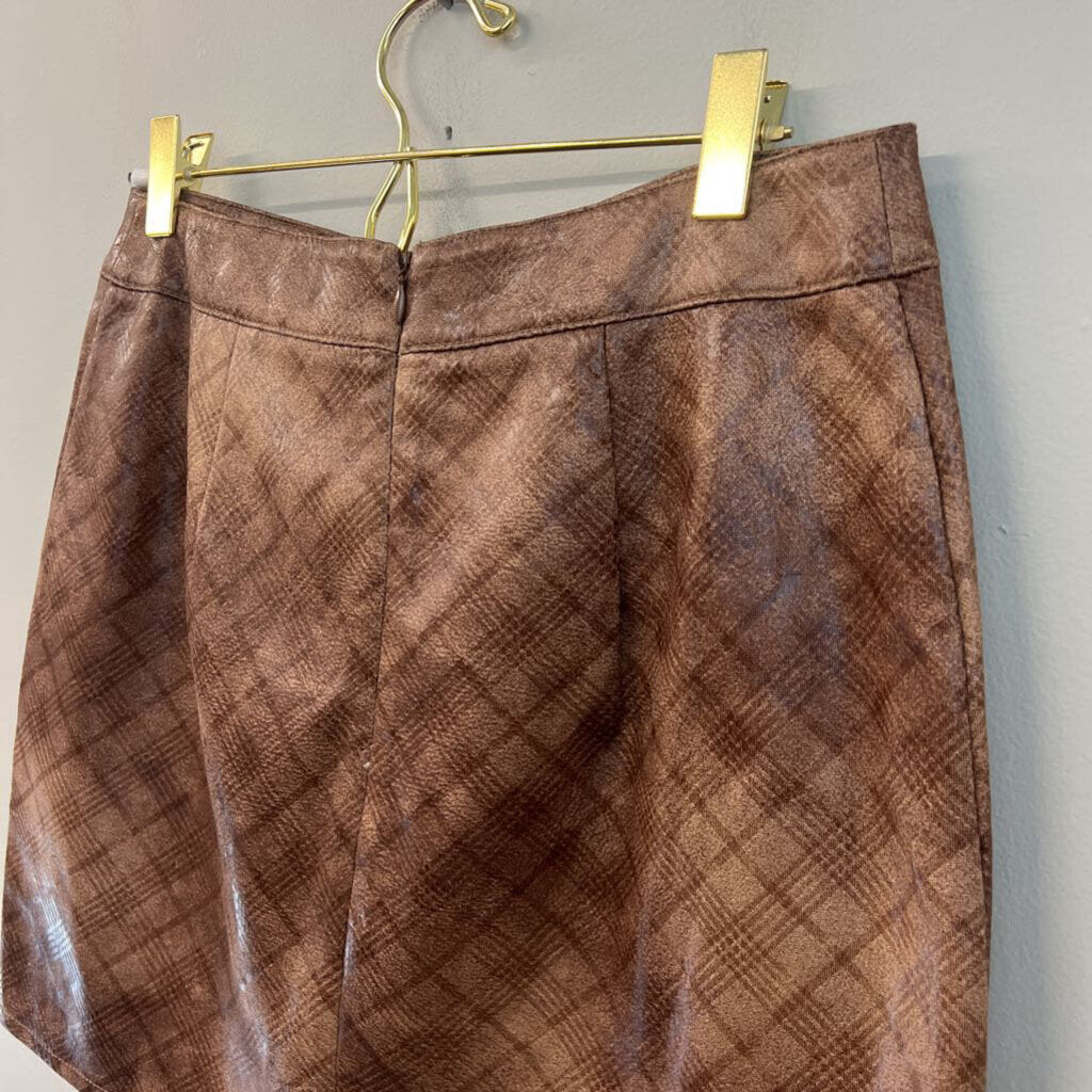 Altar'd State Brown Faux Leather Plaid Print Mini Skirt Small