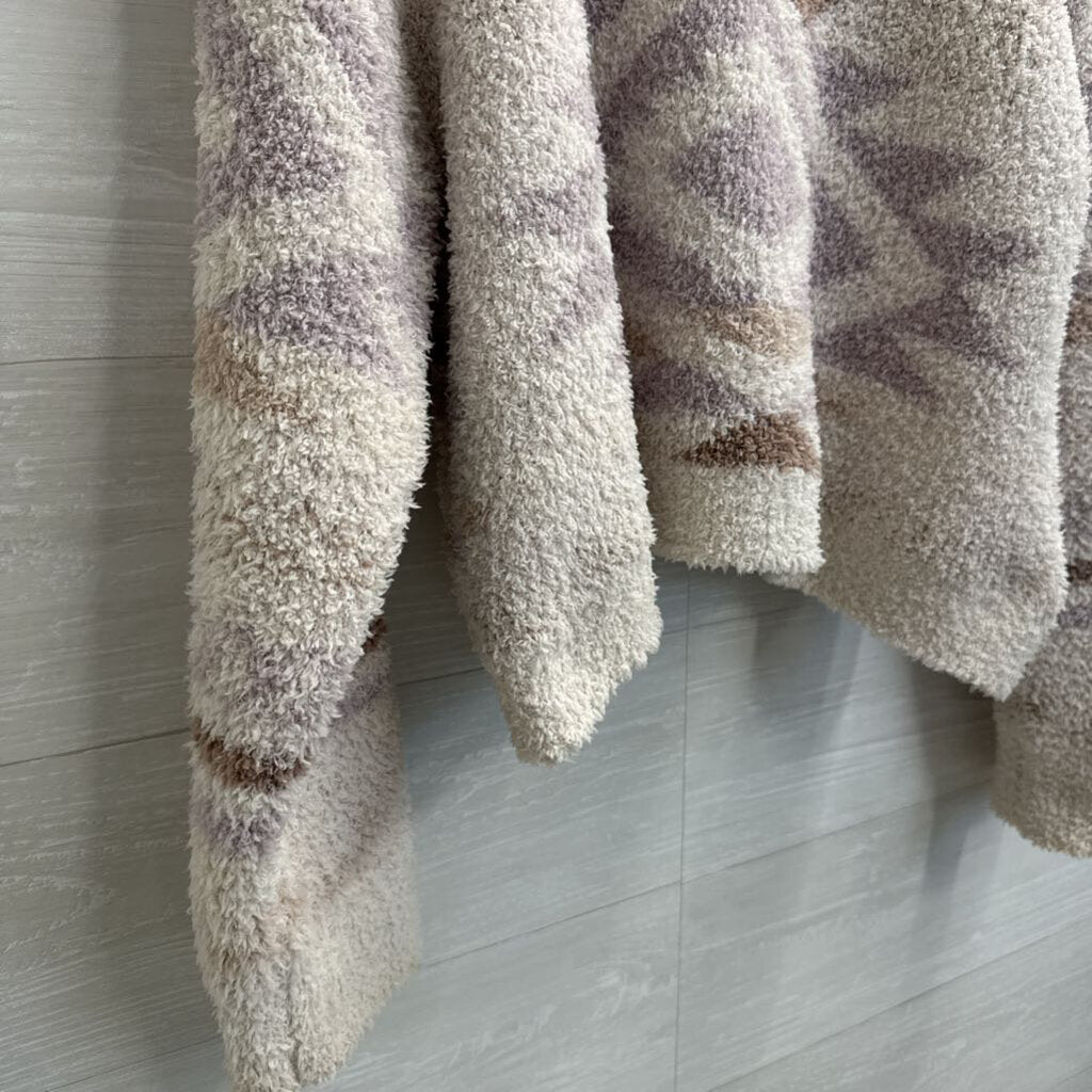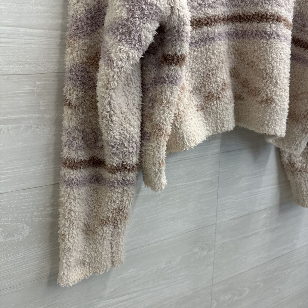 Altar'd State Cream/ Purple Print Soft Fuzzy Knit Sweater Large