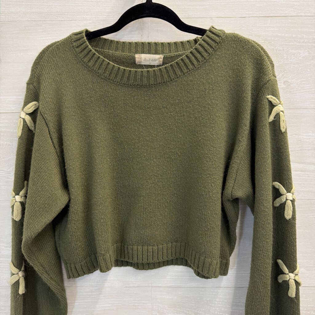 Altar'd State Green/ Cream Sleeve Detail Cropped Sweater Top Medium