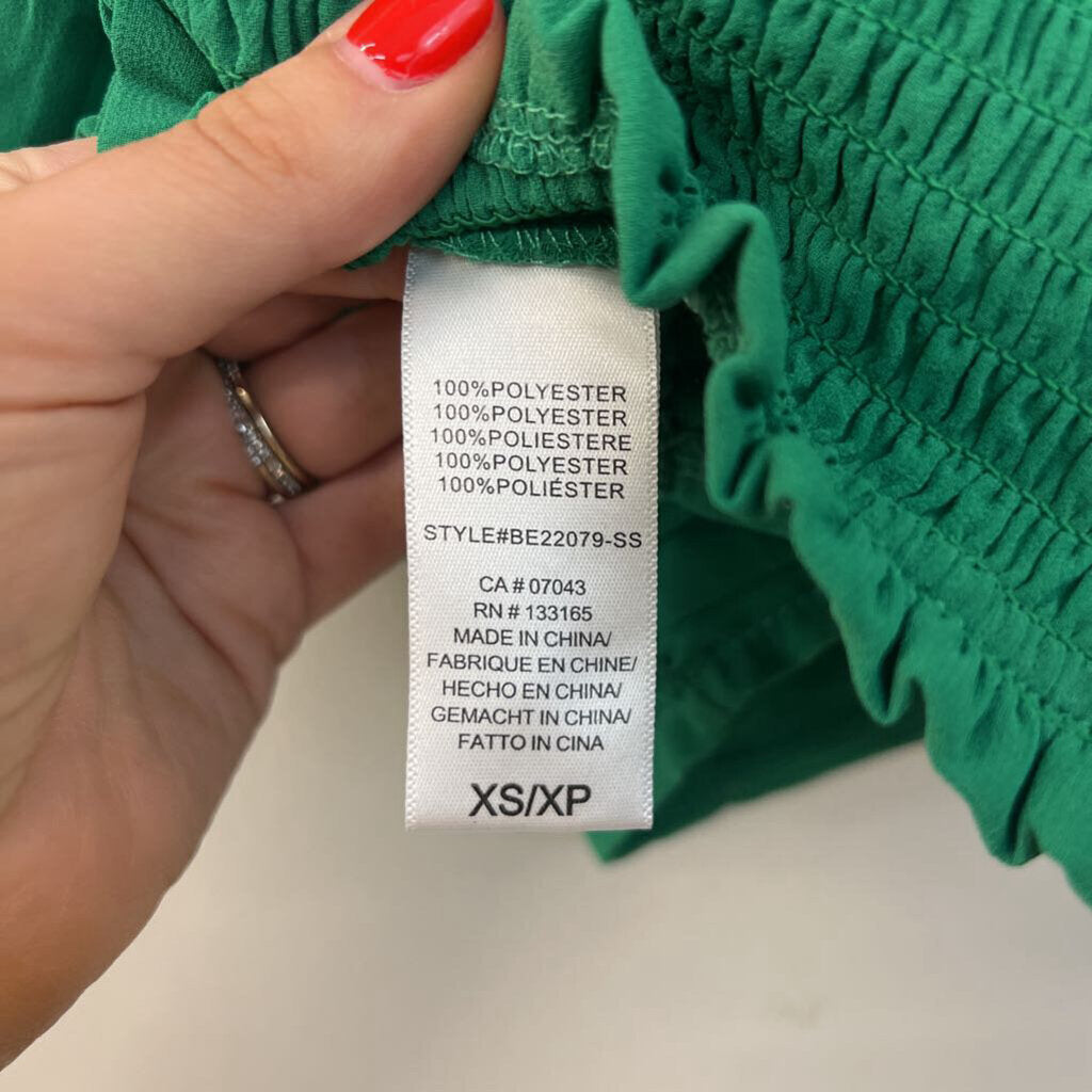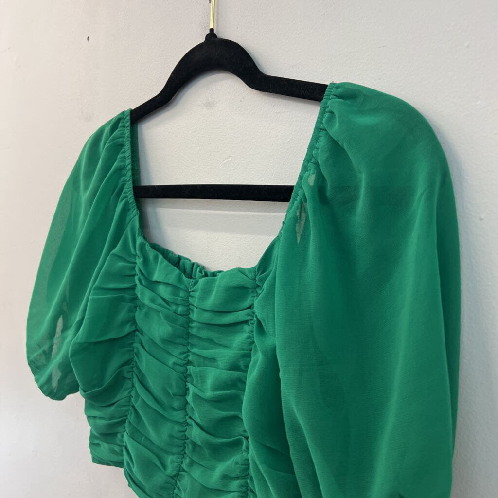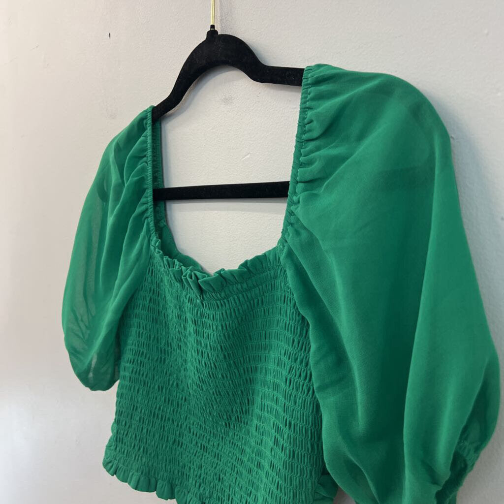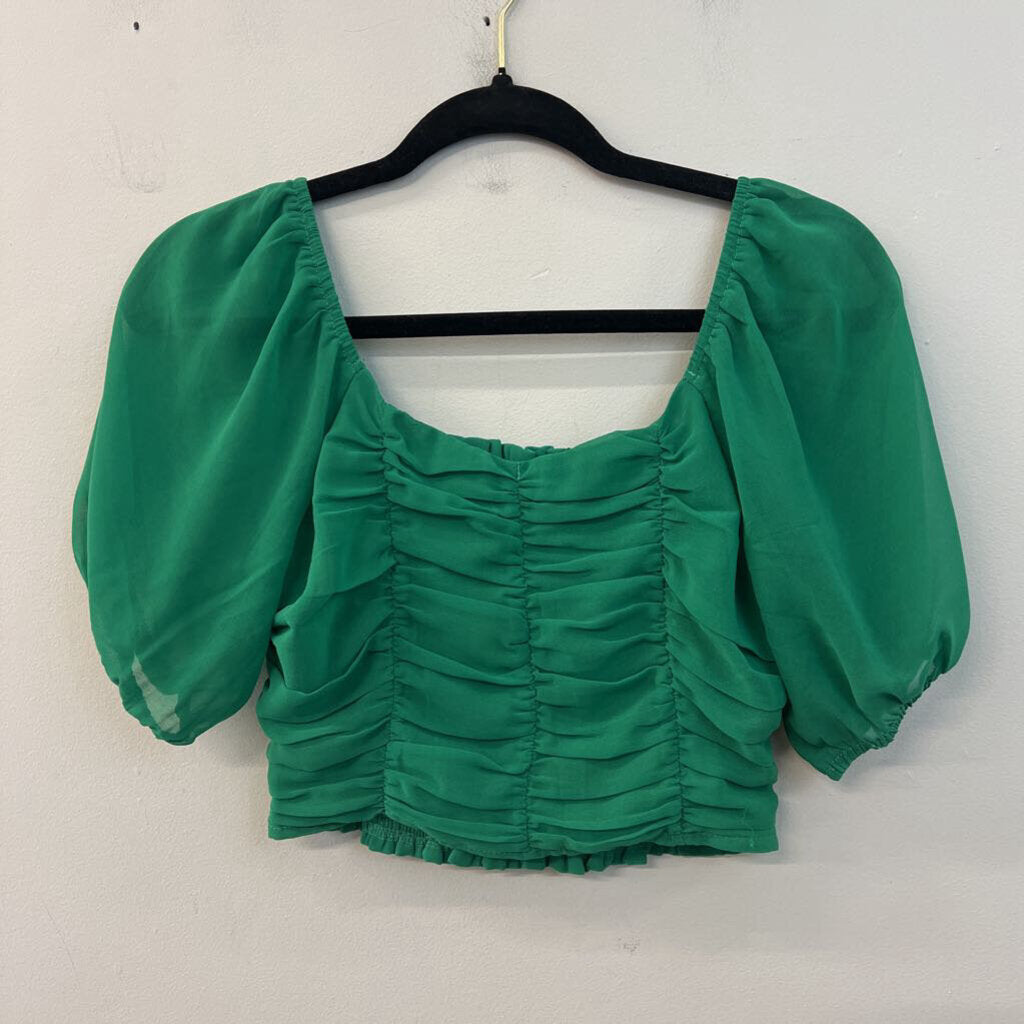 Altar'd State Green Cropped Short Puff Sleeve Top Extra Small