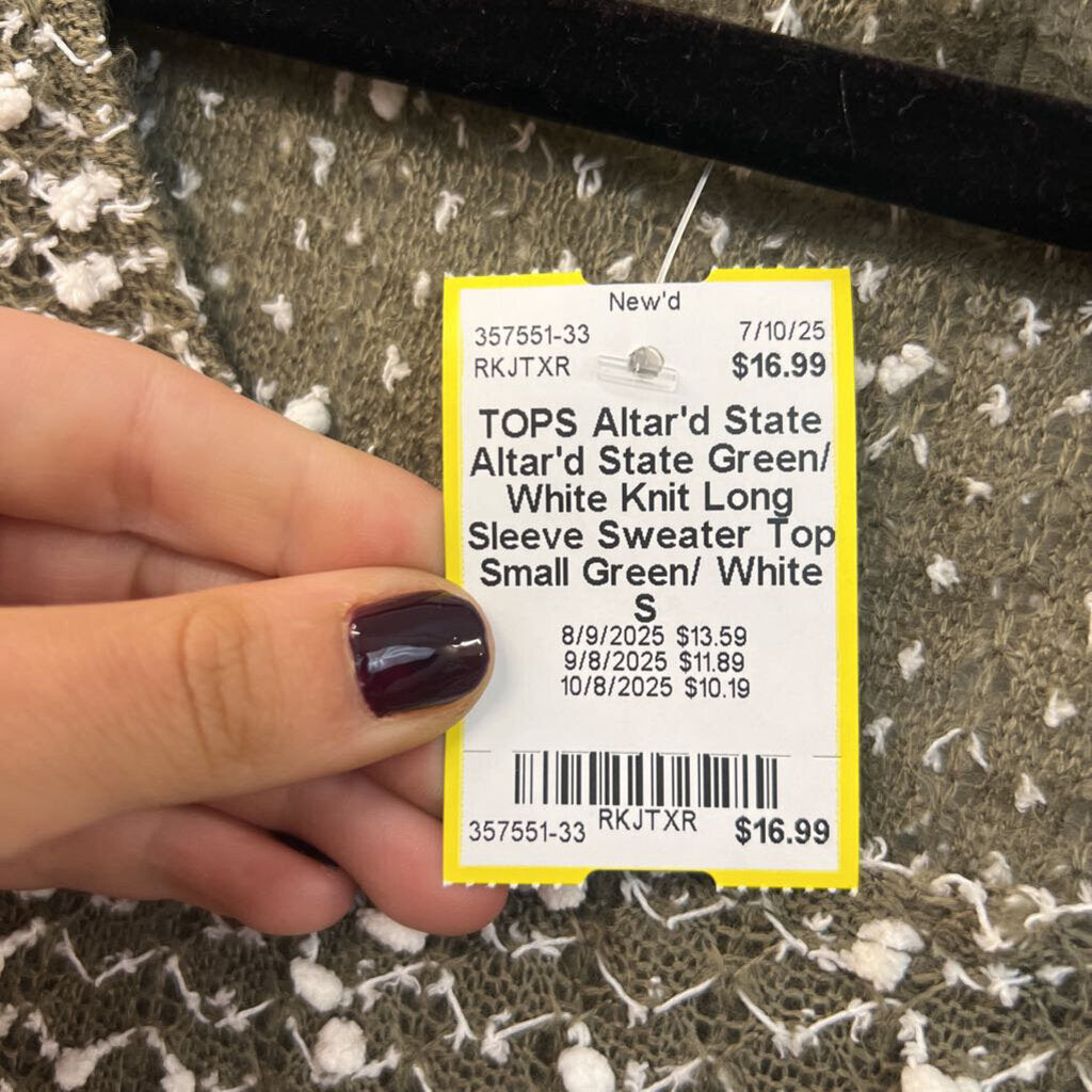 Altar'd State Green/ White Knit Long Sleeve Sweater Top Small