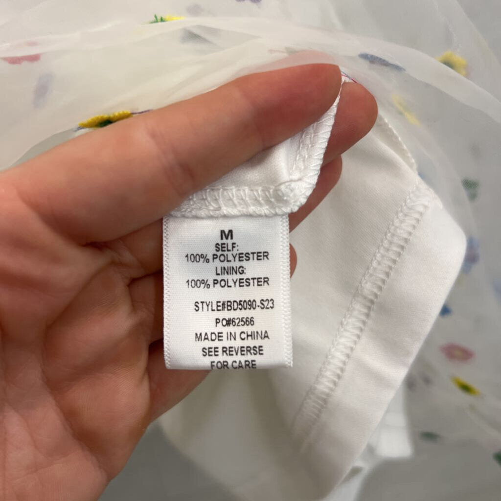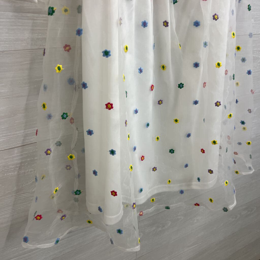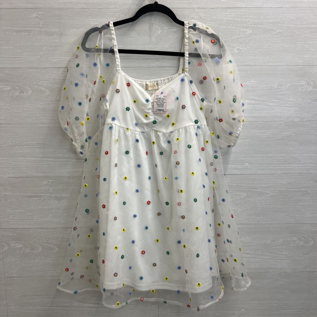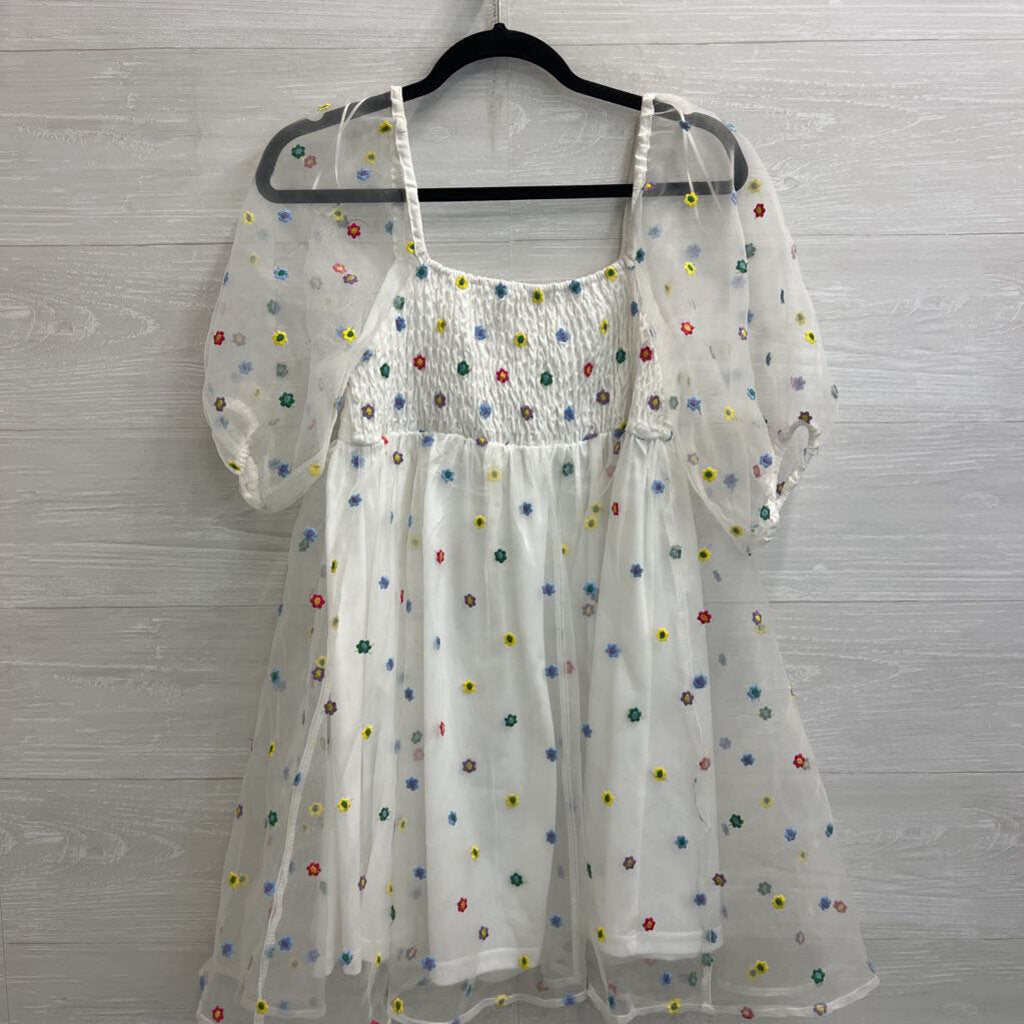 Altar'd State White/ Multi Embroidered Flower Print Long Puff Sleeve Dress Medium