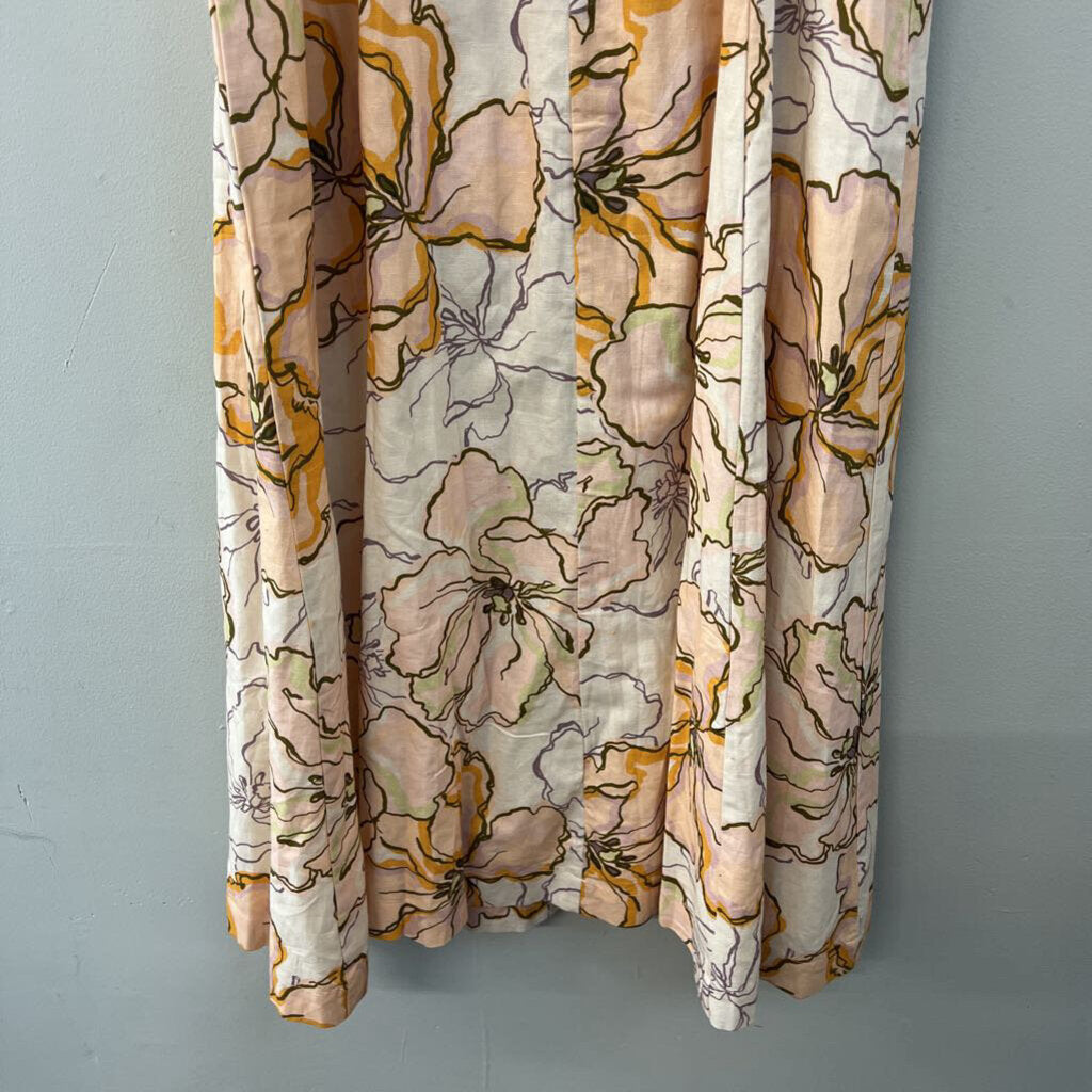 Amalie Pink/ White Flower Print Linen Blend Midi Dress 6