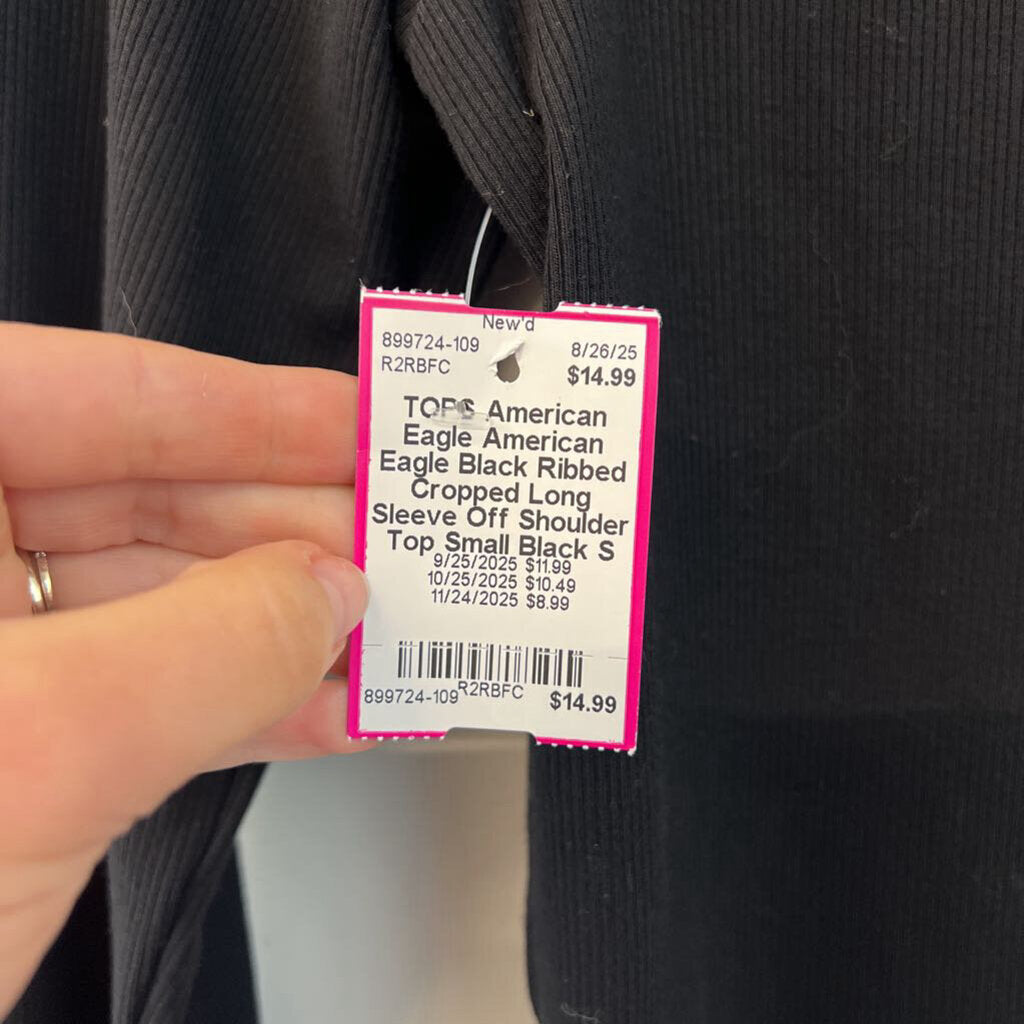American Eagle Black Ribbed Cropped Long Sleeve Off Shoulder Top Small