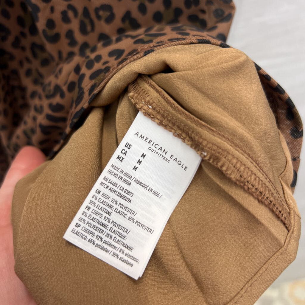 American Eagle Brown/ Black Leopard Print Smocked Top Long Sleeve Dress Medium