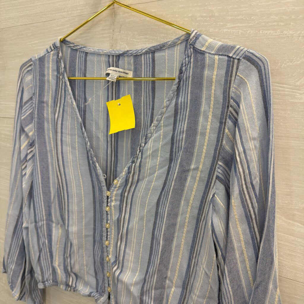 American Eagle Cropped Blue Striped Top Small