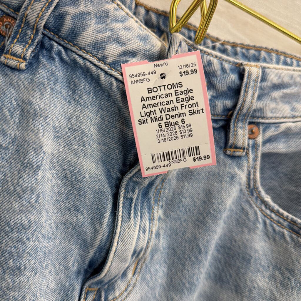 American Eagle Light Wash Front Slit Midi Denim Skirt 6