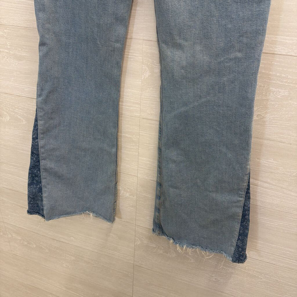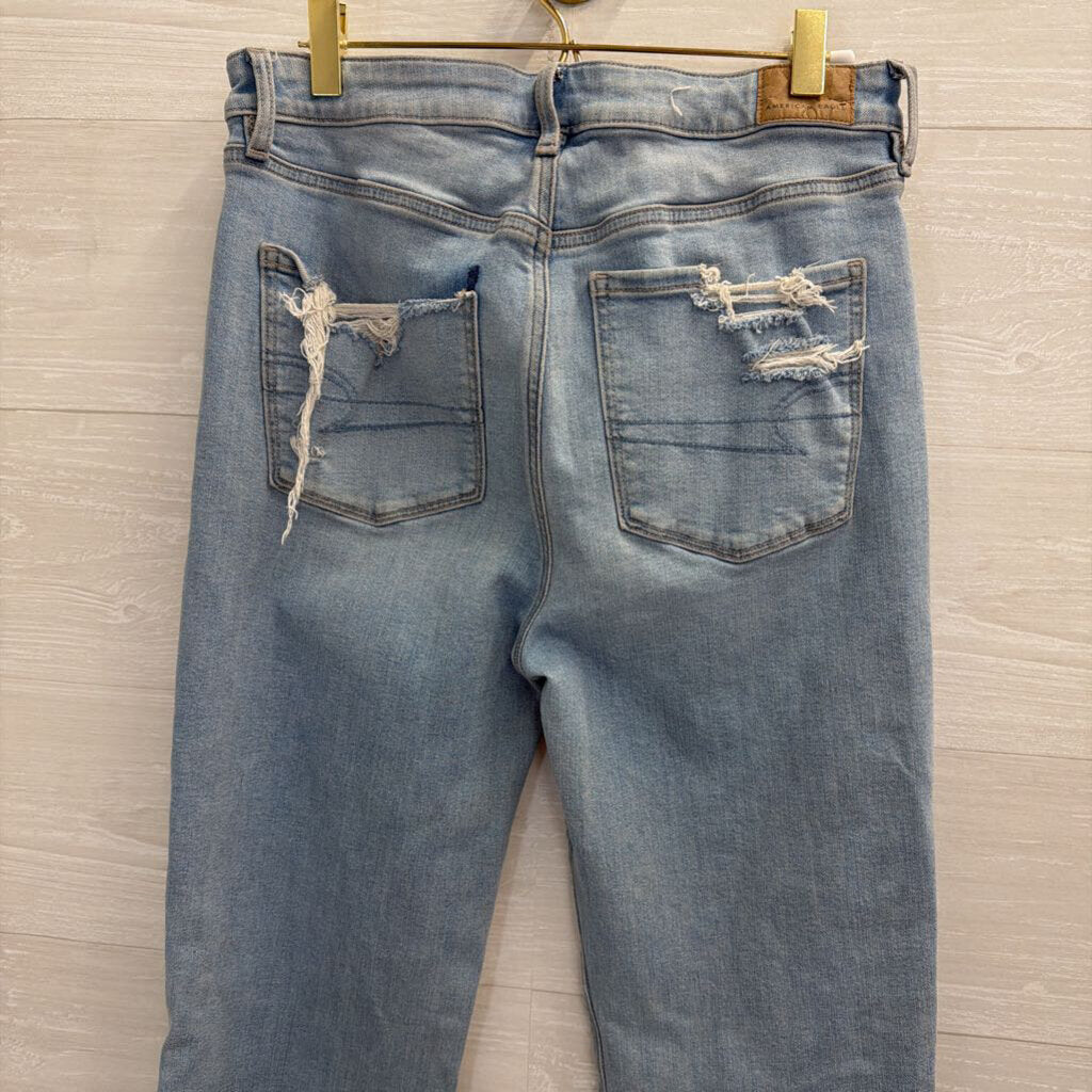 American Eagle Light Wash Patchwork Super High Rise Flare Jeans 8