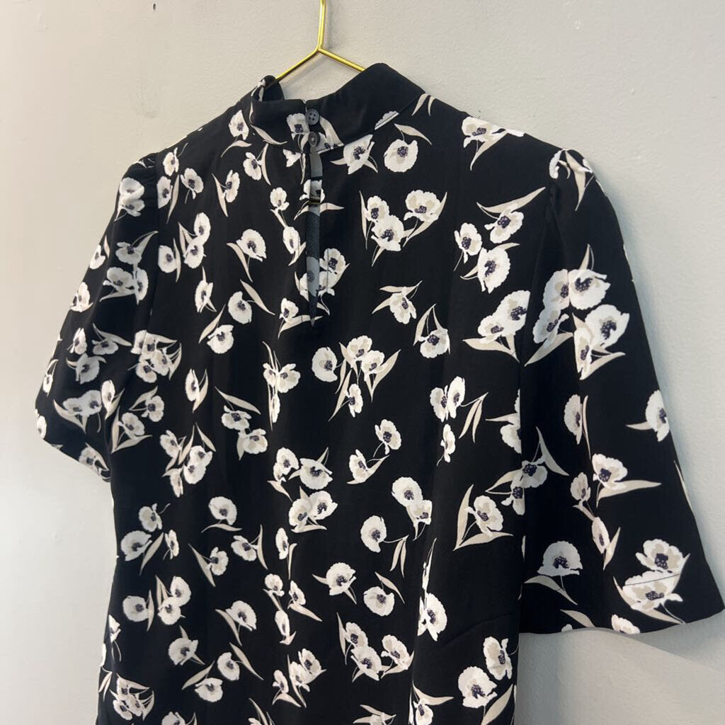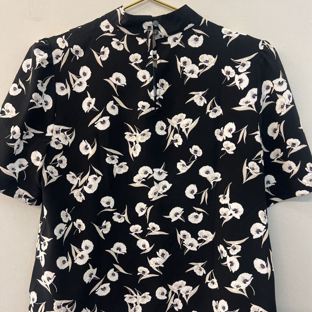 Ann Taylor Black/ White Flower Print Short Sleeve Mock Neck Top Small