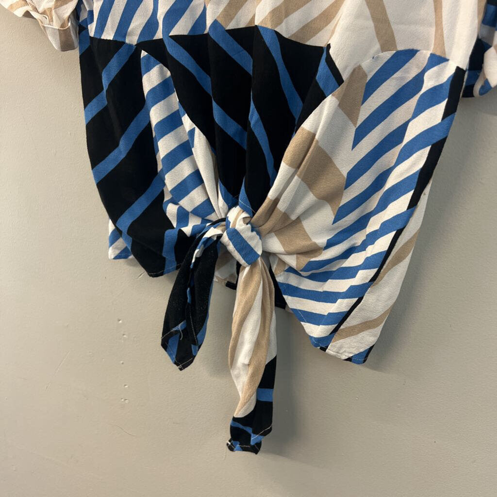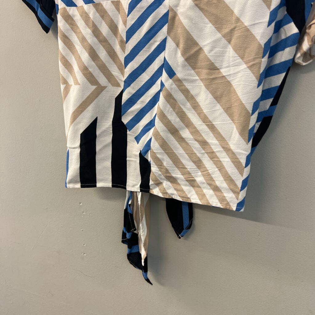 Ann Taylor White/ Multi Print Short Sleeve Tie Front Top Small