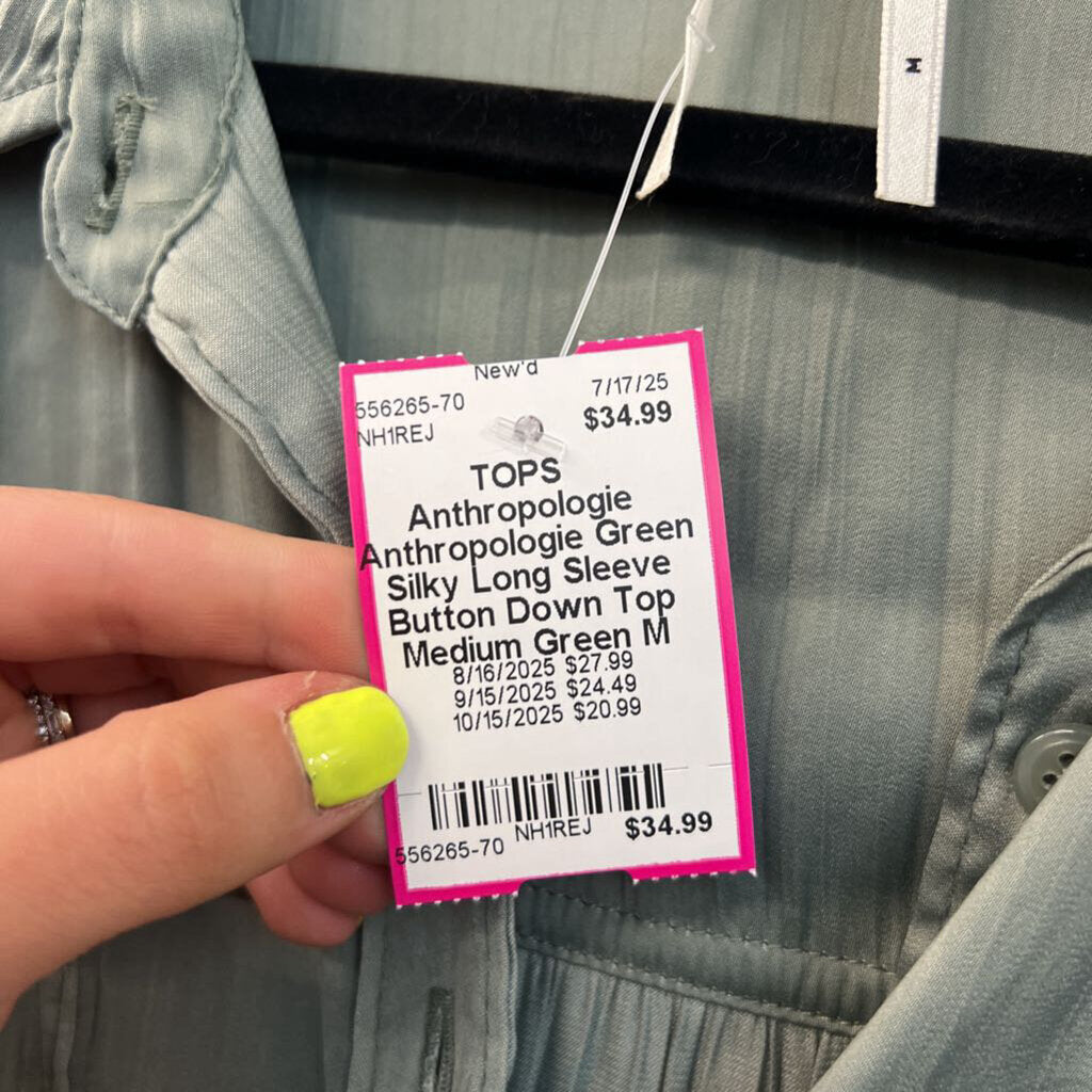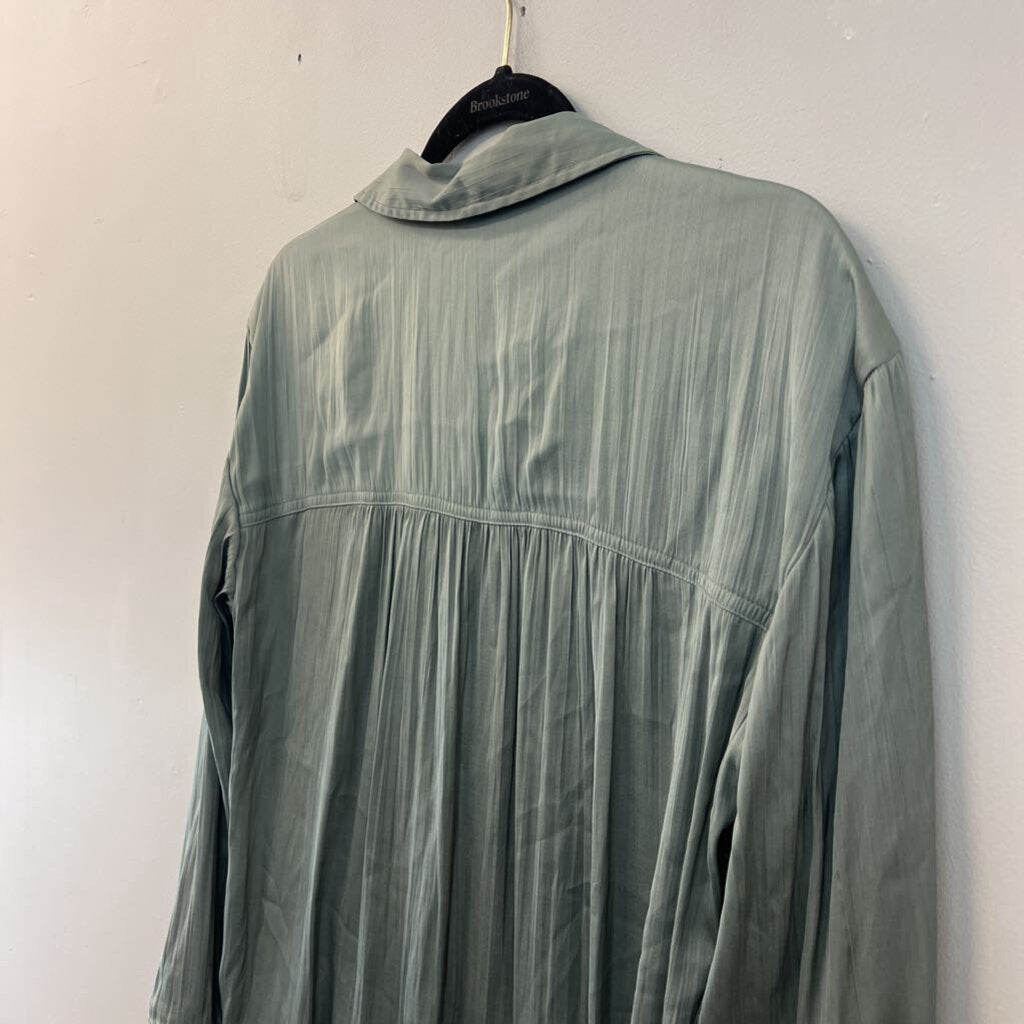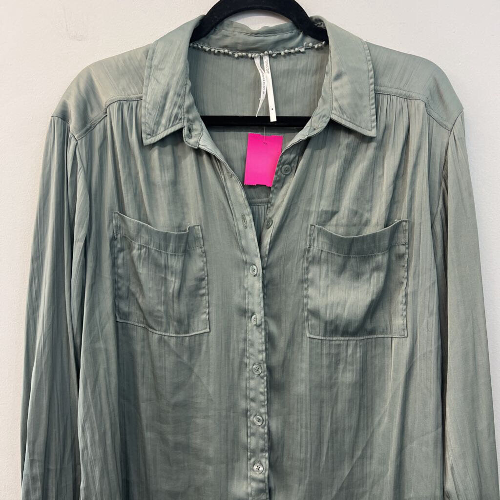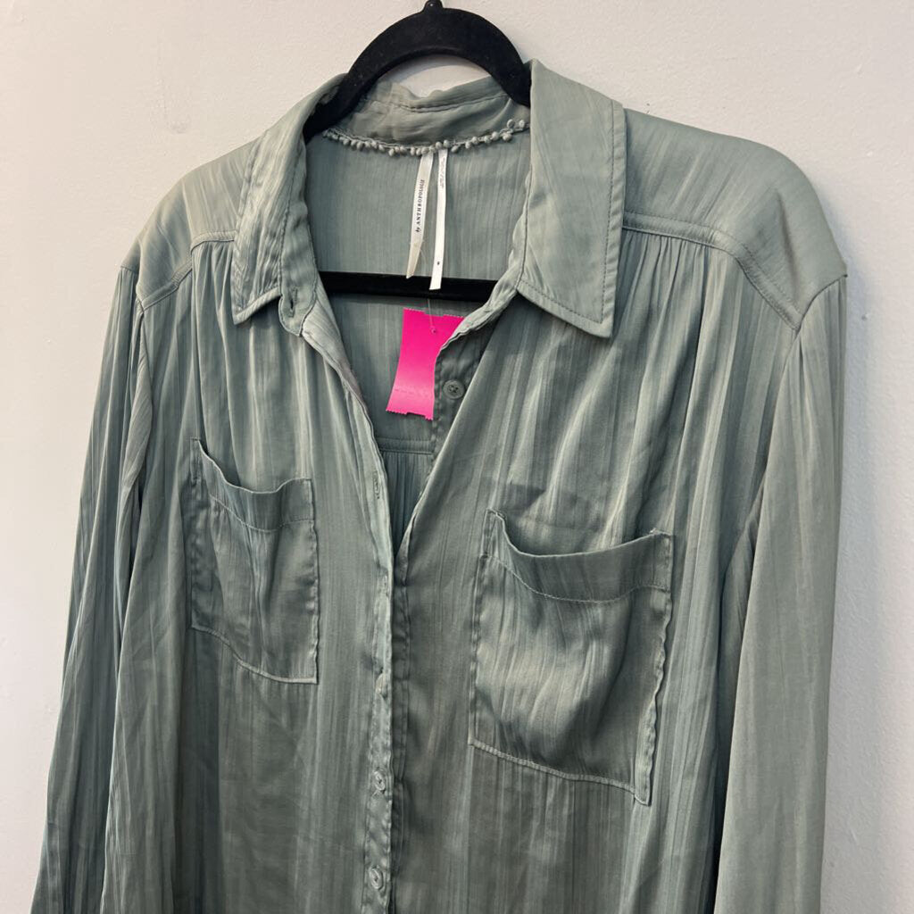 Anthropologie Green Silky Long Sleeve Button Down Top Medium