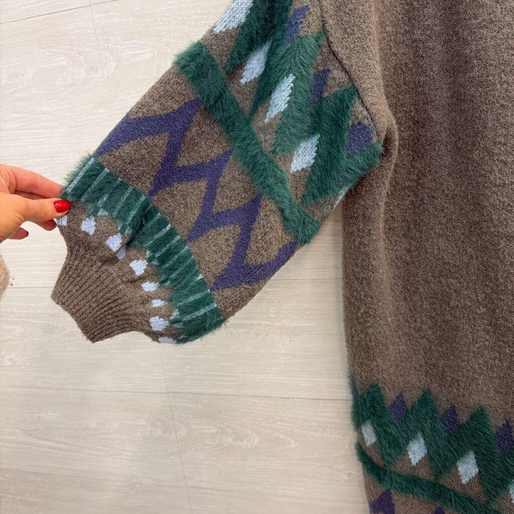 Anthropologie Grey/ Teal Pattern Kai Open Front Cardigan One Size