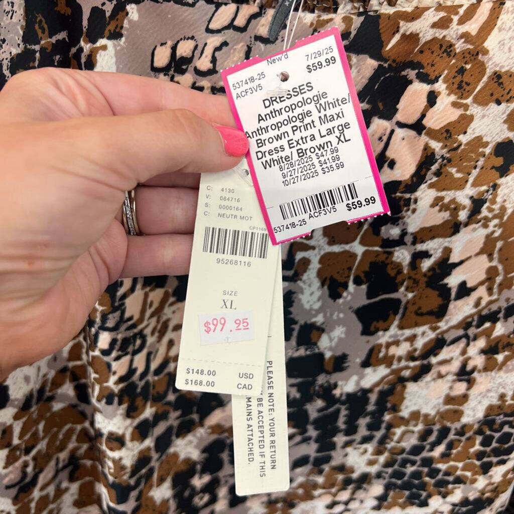 Anthropologie White/ Brown Print Maxi Dress Extra Large