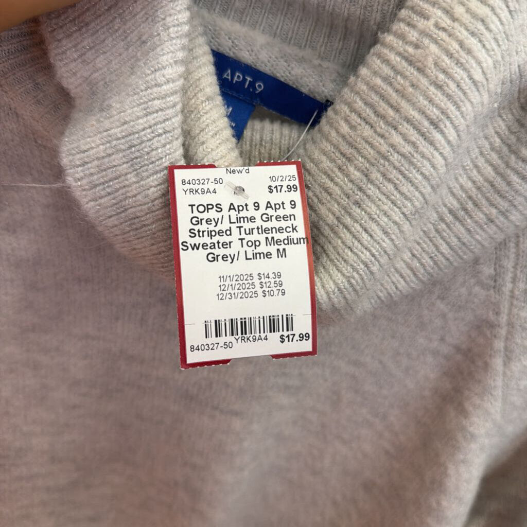 Apt 9 Grey/ Lime Green Striped Turtleneck Sweater Top Medium