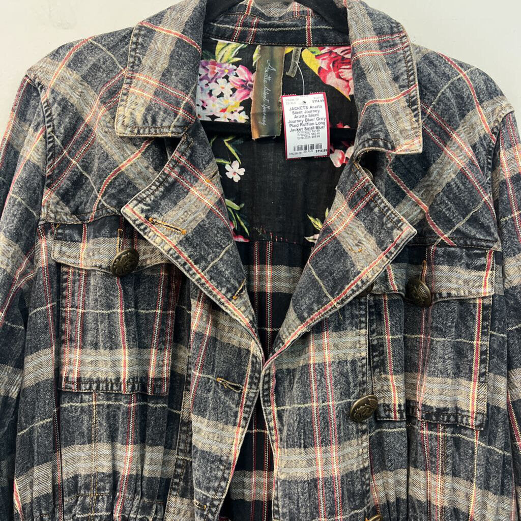 Aratta Silent Journey Blue/ Grey Plaid Ruffian Long Jacket Small
