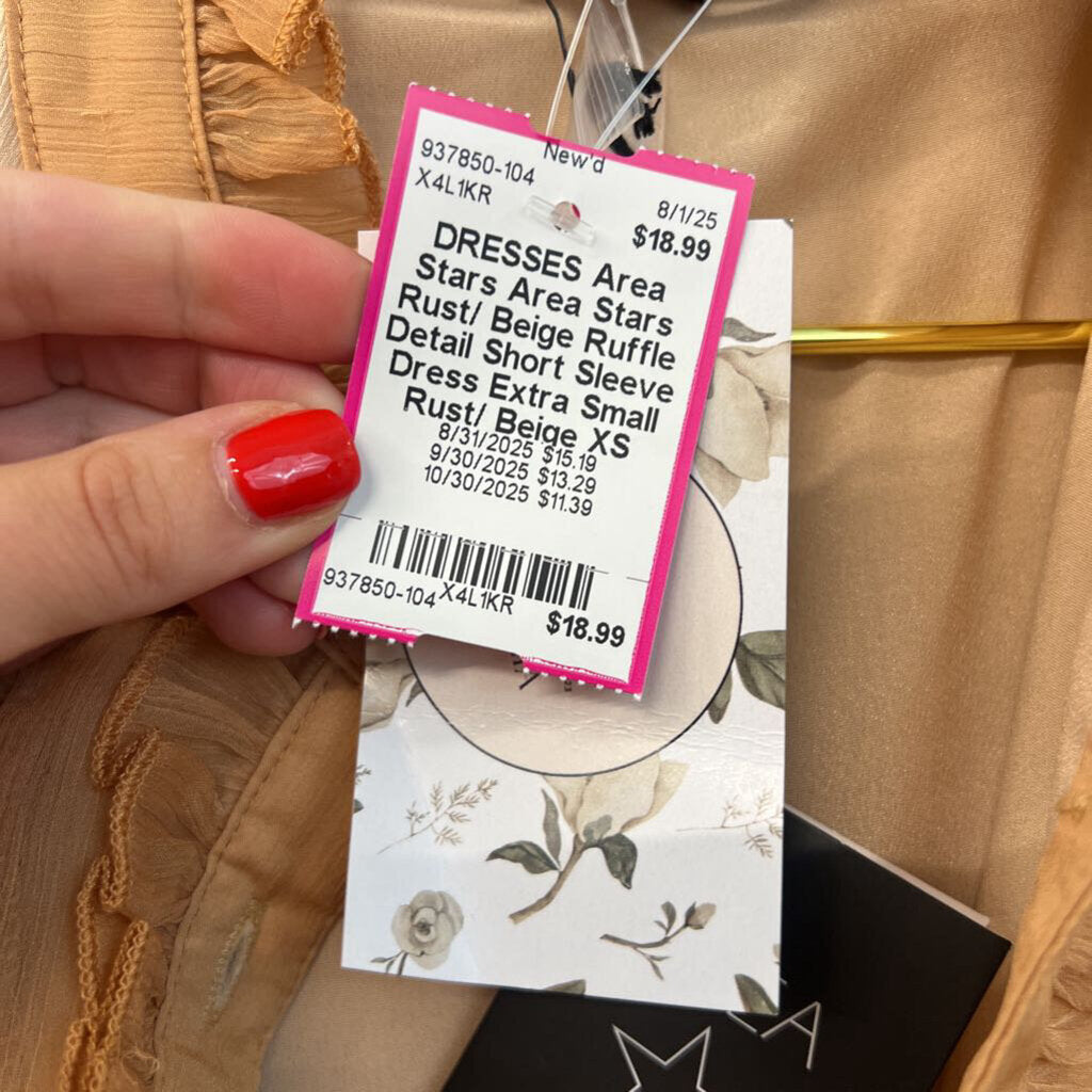Area Stars Rust/ Beige Ruffle Detail Short Sleeve Dress Extra Small