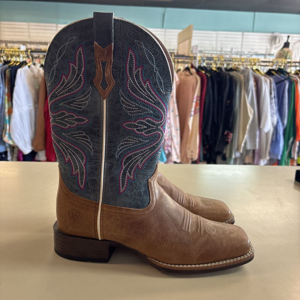 Ariat Brown/ Blue Edgewood Western Square Toe Boots 9