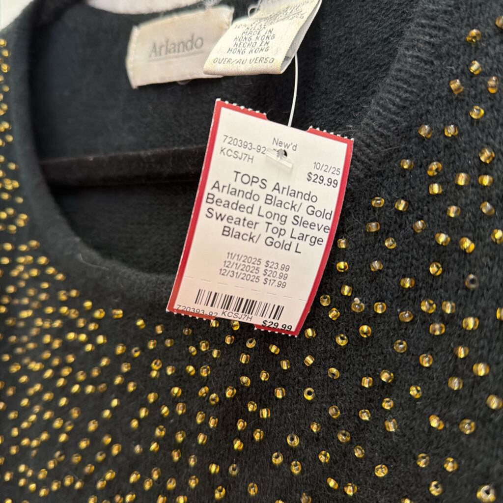 Arlando Black/ Gold Beaded Long Sleeve Sweater Top Large