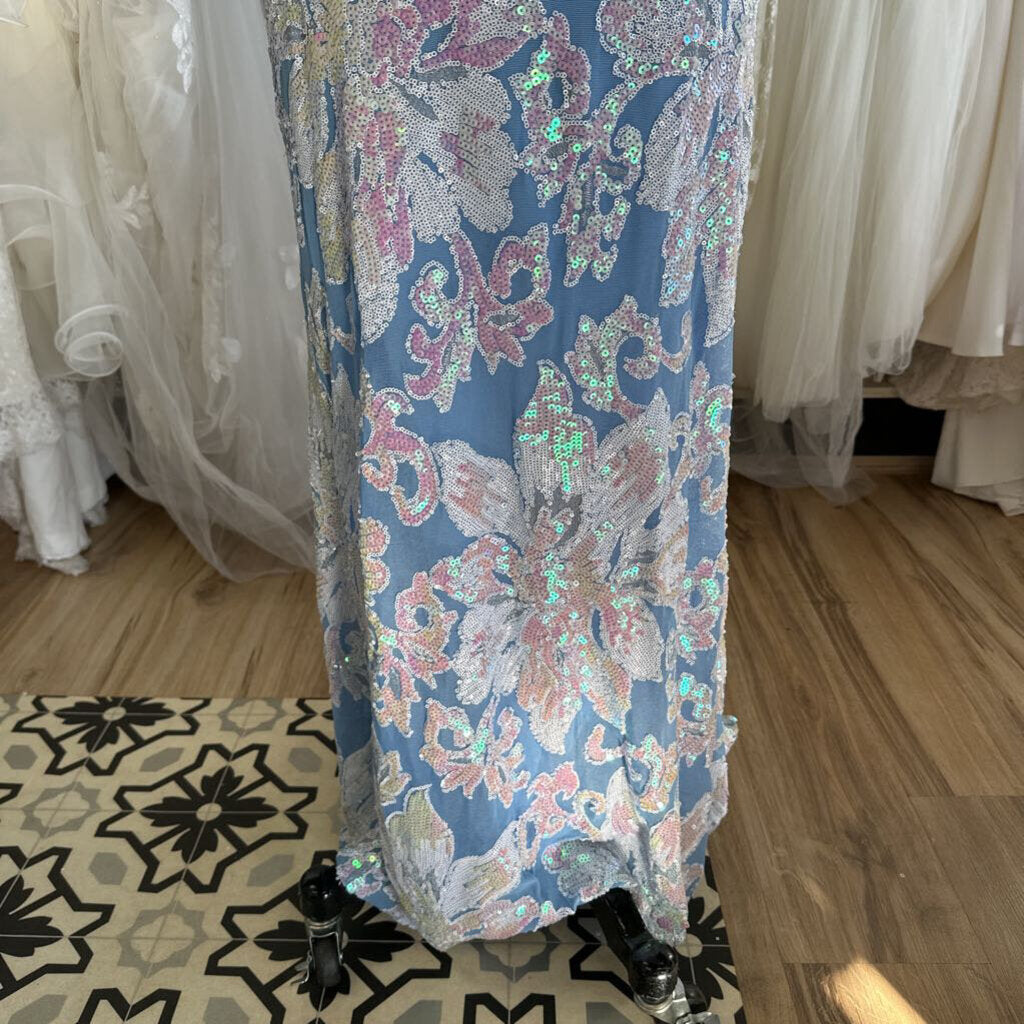 B Darlin Light Blue Irridescent Sequin Long Formal 15/16