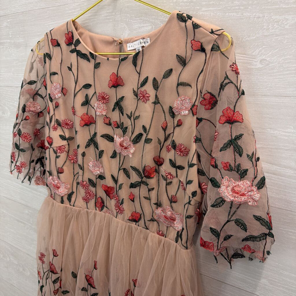 Baltic Born Pink/ Red Embroidered Flower Short Sleeve Dress Extra Large