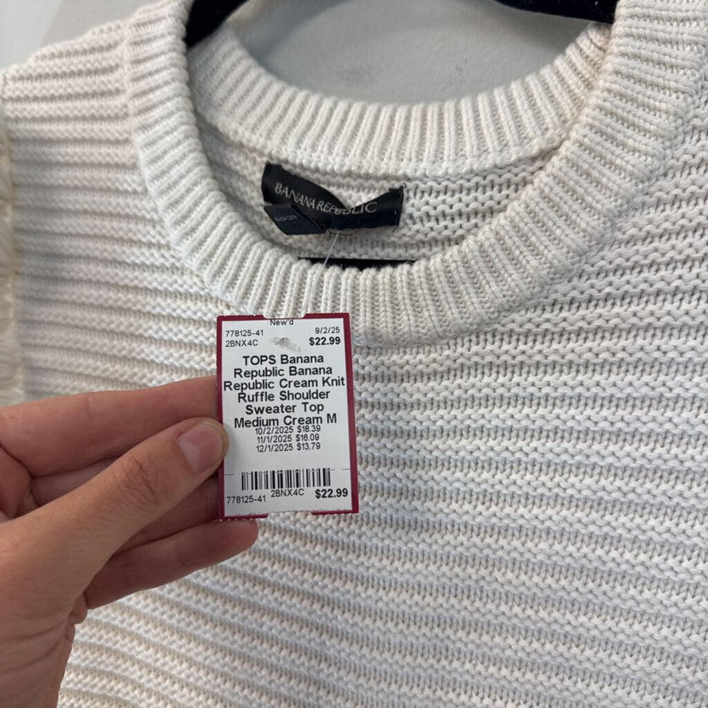 Banana Republic Cream Knit Ruffle Shoulder Sweater Top Medium