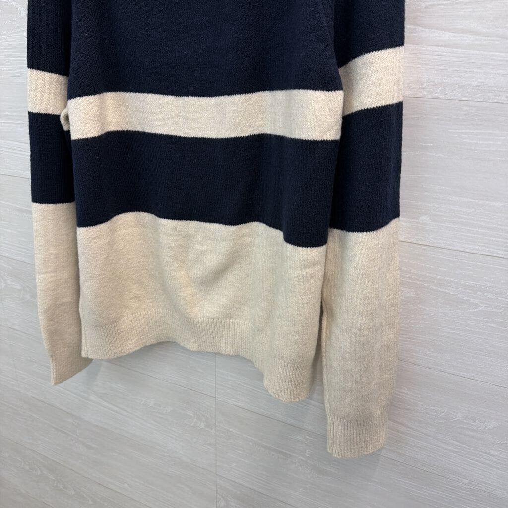 Banana Republic Cream/ Navy Striped Turtleneck Sweater Extra Large